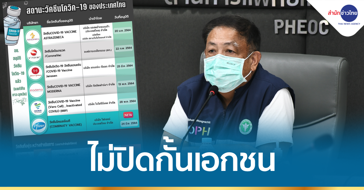 กรุงเทพฯ 22 ส.ค.-ปลัดกระทรวงสาธารณสุข ยันรัฐบาลไม่ปิดกั้นเอกชนนำเข้าวัคซีนโควิด-19 อย. พร้อมอำนวยความสะดวกเปิดช่องทางขอขึ้นทะเบียน หากเอกสารครบพิจารณาภายใน 30 วัน