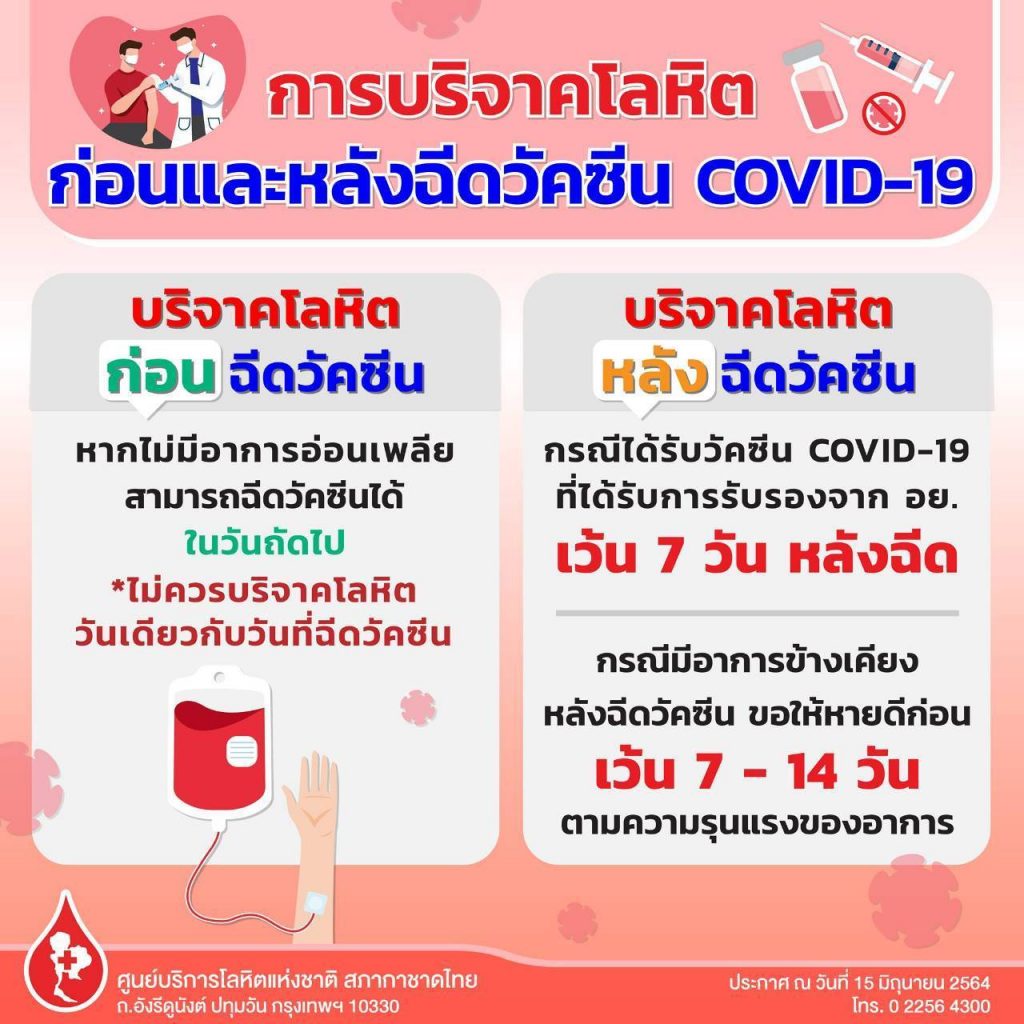 -หากไม่มีอาการอ่อนเพลีย สามารถฉีดวัคซีนได้ในวันถัดไป ไม่ควรบริจาคโลหิตวันเดียวกับวันที่ฉีดวัคซีน