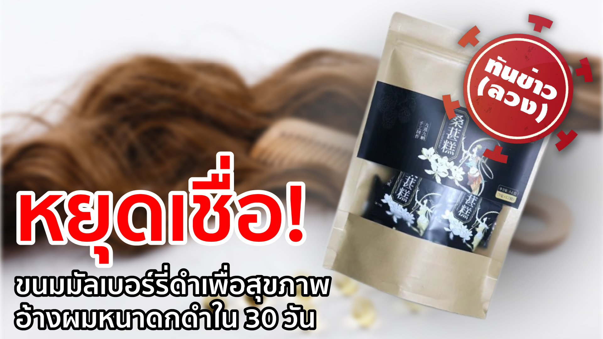 กทม. 26 ส.ค.-พบการโฆษณาจำหน่ายผลิตภัณฑ์เสริมอาหาร ขนมมัลเบอร์รี่ดำเพื่อสุขภาพ ทางเว็บไซต์ โดยอ้างสรรพคุณ ผมหงอกไม่ต้องย้อม รากผมดำงอกใหม่ใน 3 วัน ผมดำเส้นยาวใน 30 วัน ทำให้ผมหนาดกดำ ใน 60 วัน