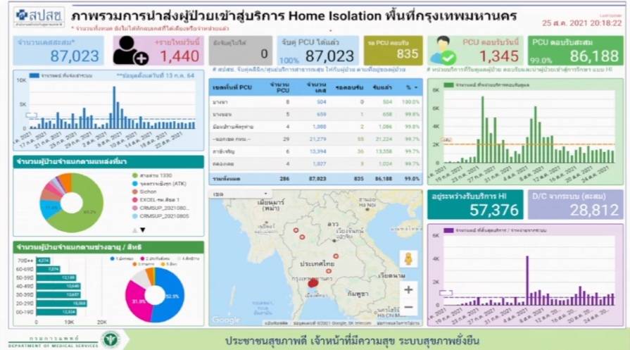นพ.สมศักดิ์ กล่าวว่า สำหรับการพบจำนวนผู้ป่วยใน กทม. พบว่าประมาณ 1,000 คน สมัครใจรับการรักษาแบบ HI แต่ทั้งนี้ต้องปฏิบัติตามกฎ 7 แยก อย่างเคร่งครัดจึงจะอนุญาตให้ใช้วิธีการรักษาแบบ HI ได้แก่ แยกนอน แยกกิน แยกอยู่ แยกของใช้ แยกทิ้ง แยกห้องน้ำ และแยกอากาศ เพื่อให้เชื้อไม่แพร่ไปสู่คนอื่น หากทำไม่ได้จึงให้มาอยู่ที่ศูนย์พักคอย แต่ก็พบว่า เมื่อคนไข้ HI มีอาการพัฒนาจากเขียวไปเหลือง เมื่อวัดออกซิเจนในเลือดไม่ดี กลับไม่ยอมย้ายมารักษาที่อื่น กลับอยู่บ้าน ตรงนี้ยังคงเป็นปัญหา ส่วนเรื่องข้อกังขาติดตามรักษา มีการใช้เทเลเมดดิซีน ให้หมอคุยกับคนไข้วันละ 2 ครั้ง พร้อมให้ความมั่นใจการทำ HI มีมาตรฐานตัวเลขของคนหายป่วยจะนับรวมต่อเมื่อครบตามระยะเวลาการรักษาจึงจ่ายออก และเตรียมประเมินผลคนไข้ที่ทำ HI ที่มีการจับคู่ติดตามอาการกับ 3 รพ. ได้แก่ ราชวิถี เลิดสิน และนพรัตนราชธานี ก่อน จากนั้นเตรียมประเมินกับ รพ.ทุกแห่ง.-สำนักข่าวไทย