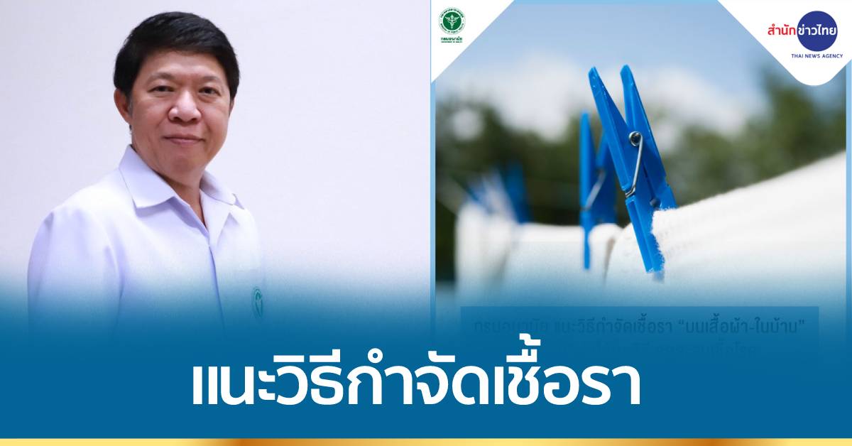 นายแพทย์สุวรรณชัย วัฒนายิ่งเจริญชัย อธิบดีกรมอนามัย กล่าวว่า ในช่วงหน้าฝน ปัญหาที่พบบ่อยคือเสื้อผ้ามีกลิ่นอับชื้น เนื่องจากเปียกฝนหรือสวมใส่เสื้อผ้าที่เปียกชื้นเป็นเวลานานๆ หลายชั่วโมง รวมถึงการสวมหน้ากากผ้าหรือหน้ากากอนามัยที่เปียกชื้นอาจเป็นแหล่งสะสมของเชื้อโรคได้ ดังนั้น เมื่อกลับถึงบ้านแล้วควรนำเสื้อผ้าที่เปียกไปแขวนผึ่งให้แห้ง ก่อนใส่ตะกร้าเพื่อรอการซัก ไม่ควรทิ้งไว้นาน ๆ เพราะอาจทำให้เกิดเชื้อราบนเสื้อผ้าได้ หากนำมาสวมใส่อาจเสี่ยงต่อการเกิดโรคผิวหนังจากเชื้อราตามมา อาทิ โรคกลาก เกลื้อน ซึ่งจะมีลักษณะเป็นผื่นแดง มีขุยรอบ ๆ เกิดอาการคัน ทำให้เป็นผื่นแพ้และติดเชื้อได้ ไม่ควรเกาหรือปล่อยไว้จนลุกลาม ควรรีบไปพบแพทย์ผิวหนังเพื่อรับการรักษาที่ถูกวิธีต่อไป ซึ่งการทำความสะอาดเสื้อผ้าที่มีกลิ่นอับชื้นหรือปัญหาเชื้อราบนผ้า สามารถทำได้ด้วย 2 วิธีคือ วิธีที่ 1 ซักตามปกติแล้วนำไปต้มในน้ำเดือดนาน 15 นาที ถึง 1 ชั่วโมง ส่วนวิธีที่ 2 แช่ด้วยน้ำยาฆ่าเชื้อที่สามารถหาได้ในครัวเรือน ได้แก่ น้ำยาซักผ้าขาวที่มีส่วนผสมโซเดียมไฮโปคลอไรด์ โดยเติม 1 ฝา ต่อน้ำ 10 ลิตร แช่ผ้าไว้นาน 5-15 นาที หรือใช้น้ำส้มสายชู 2-3 ถ้วยตวง ต่อน้ำ 1-2 ลิตร แช่ผ้าไว้อย่างน้อย 1 ชั่วโมง แล้วซักตามปกติ จากนั้นนำไปตากแดดจัดหรือตากในที่ที่มีอากาศถ่ายเทจนแห้ง แล้วนำมารีด ทั้งข้างในและข้างนอกตัวเสื้อ โดยก่อนทำความสะอาดเสื้อผ้า ควรอ่านป้ายสัญลักษณ์การดูแลรักษาเสื้อผ้า เพื่อเลือกวิธีทำความสะอาดเสื้อผ้าที่ดีที่สุดและป้องกันเสื้อผ้าชำรุด ส่วนหน้ากากผ้า ควรเปลี่ยนทุกวัน หรือเปลี่ยนเมื่อรู้สึกเปียกชื้นในระหว่างวัน และให้ซักหน้ากากผ้าให้สะอาดทุกวันด้วยสบู่หรือผงซักฟอกแล้วตากแดดให้แห้ง กรณีสวมหน้ากากอนามัย ให้เปลี่ยนหน้ากากอนามัยชิ้นใหม่ทุกวัน หรือเมื่อหน้ากากเปียกชื้น และควรพกหน้ากากอนามัยสำรองไว้ติดตัว เพื่อให้สามารถเปลี่ยนใหม่ได้ทันที