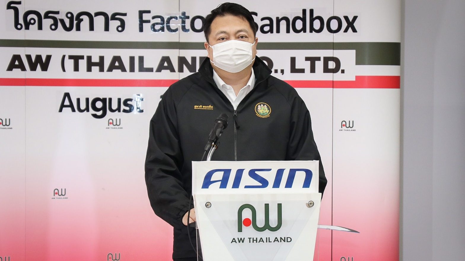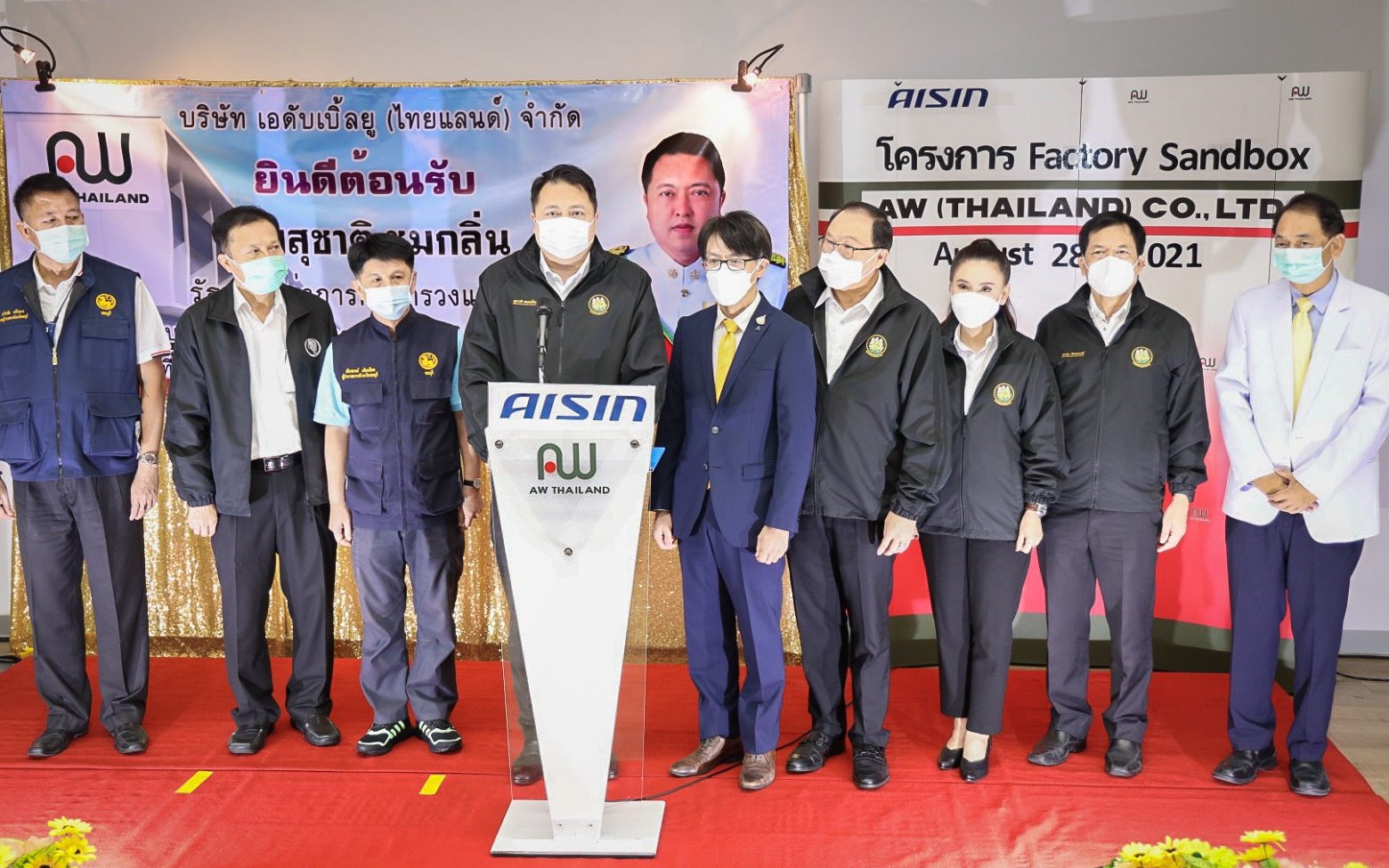นายสุชาติ ชมกลิ่น รัฐมนตรีว่าการกระทรวงแรงงาน ลงพื้นที่ติดตามการดำเนินงานโครงการแฟคทอรี่แซนด์บ็อกซ์ (Factory Sandbox) พร้อมตรวจเยี่ยมการฉีดวัคซีนและให้กำลังใจแก่ผู้ประกันตนในสถานประกอบการ ณ บริษัท เอดับเบิ้ลยู (ไทยแลนด์) จำกัด ตำบลเขาคันทรง อำเภอศรีราชา จังหวัดชลบุรี และบริษัท แวนด้าแพค จำกัด ตำบลคลองตำหรุ อำเภอเมือง จังหวัดชลบุรี โดยมี นายสุรชัย ชัยตระกูลทอง ผู้ช่วยรัฐมนตรีประจำกระทรวงแรงงาน นางธิวัลรัตน์ อังกินันทน์ ที่ปรึกษารัฐมนตรีว่าการกระทรวงแรงงานนายสุเทพ ชิตยวงษ์ เลขานุการรัฐมนตรีว่าการกระทรวงแรงงาน พล.ต.ต.นันทชาติ ศุภมงคล ประจำสำนักนายกรัฐมนตรี ปฏิบัติหน้าที่ประจำกระทรวงแรงงาน นางเธียรรัตน์ นะวะมะวัฒน์ โฆษกกระทรวงแรงงาน (ฝ่ายการเมือง) นายสุทธิ สุโกศล ปลัดกระทรวงแรงงาน นายภัครธรณ์ เทียนไชย ผู้ว่าราชการจังหวัดชลบุรี นายธวัชชัย ศรีทอง รองผู้ว่าราชการจังหวัดชลบุรี นายยูกิฮิโร โทริยามา ประธานกรรมการบริษัทริโก้ แมนูแฟคเจอริ่ง (ประเทศไทย) จำกัด นายวราวงศ์ ตั้งกิจเวทย์ ประธานกรรมการบริษัท แวนด้าแพค จำกัด พร้อมด้วยผู้บริหารระดับสูงกระทรวงแรงงาน เข้าร่วมในครั้งนี้ด้วย โดย นายสุชาติ กล่าวว่า รัฐบาลภายใต้การบริหารของท่านนายกรัฐมนตรีและรัฐมนตรีว่าการกระทรวงกลาโหม พล.อ.ประยุทธ์ จันทร์โอชา และท่านรองนายกรัฐมนตรี พล.อ.ประวิตร วงษ์สุวรรณ ได้ให้ความห่วงใยและติดตามผลกระทบจากสถานการณ์การแพร่ระบาดของโควิด-19 ในด้านเศรษฐกิจและความเป็นอยู่ของพี่น้องประชาชน ได้สั่งการให้ทุกกระทรวงทำงานบูรณาการร่วมกัน เพื่อแก้ไขปัญหาที่เป็นความเดือดร้อนเร่งด่วนเพื่อให้เกิดผลสัมฤทธิ์อย่างเป็นรูปธรรม รวดเร็ว และทันเหตุการณ์