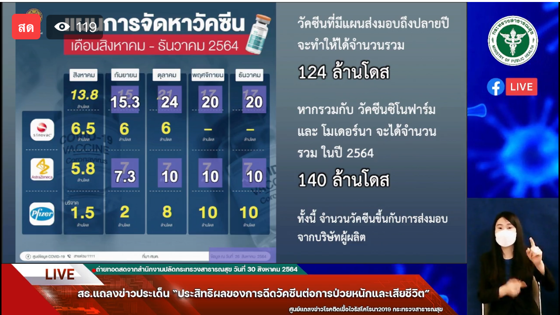 สำหรับการจัดหาวัคซีนเดือน ส.ค.-ธ.ค.จะเป็นวัคซีนที่มีแผนส่งมอบจำนวน 124 ล้านโดส หากรวมกับซิโนฟาร์มและโมเดอร์นาจะได้ 140 ล้านโดส ทำให้มาตรการควบคุมโรคเพื่อฟื้นฟูเศรษฐกิจเปิดประเทศอย่างปลอดภัย มีความเป็นจริงมากขึ้น