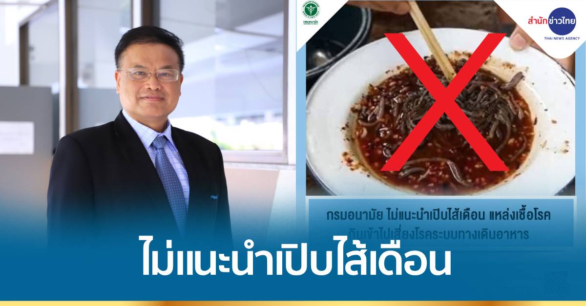 กทม. 30 ส.ค.-กรมอนามัย เตือนประชาชนที่นิยมเปิบพิสดาร ไม่แนะนำให้กินไส้เดือน หวั่นได้รับเชื้อแบคทีเรียหรือเชื้อโรคเข้าสู่ร่างกาย เมื่อสะสมอยู่ในร่างกายจนเจริญเติบโตมีปริมาณมากขึ้น อาจเกิดโรคติดเชื้อต่อระบบทางเดินอาหารได้