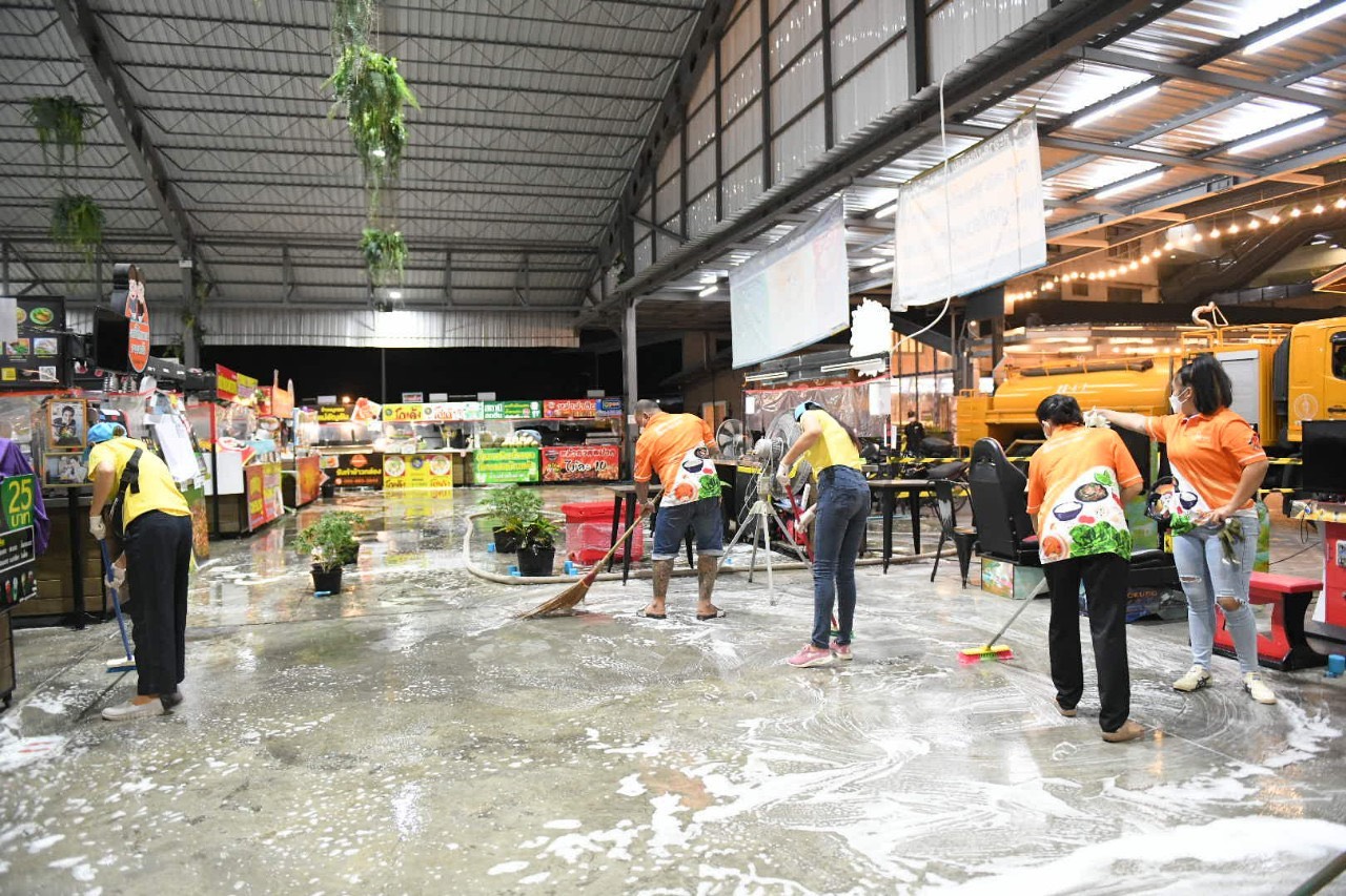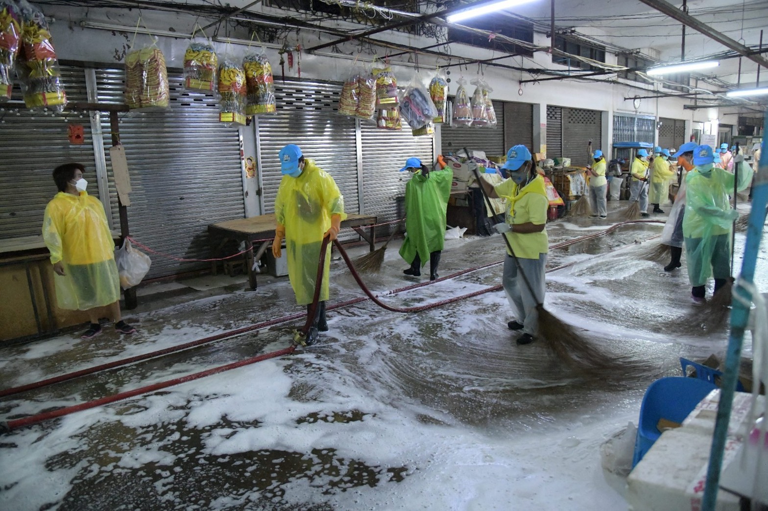 ทั้งนี้ กทม.โดยสำนักงานเขตภาษีเจริญ พร้อมด้วยจิตอาสาพระราชทาน จัดกิจกรรม BKK Big Cleaning Day กทม.ร่วมใจ ต้านภัยโควิด โดยจัดกำลังเจ้าหน้าที่ 100 คน พร้อมรถฉีดน้ำพร้อมอุปกรณ์และเจ้าหน้าที่ ระดมฉีดล้างทำความสะอาด และฆ่าเชื้อ บริเวณตลาดเสนีย์ ตรงข้ามห้างซีคอนบางแค มีร้านค้า 120 ร้านค้า และตลาดต้นไม้ชายคา เพชรเกษม 28 มีร้านค้า 147 ร้านค้า ซึ่งเป็นตลาดประเภทที่ 1 (ตลาดที่มีโครงสร้างอาคาร)