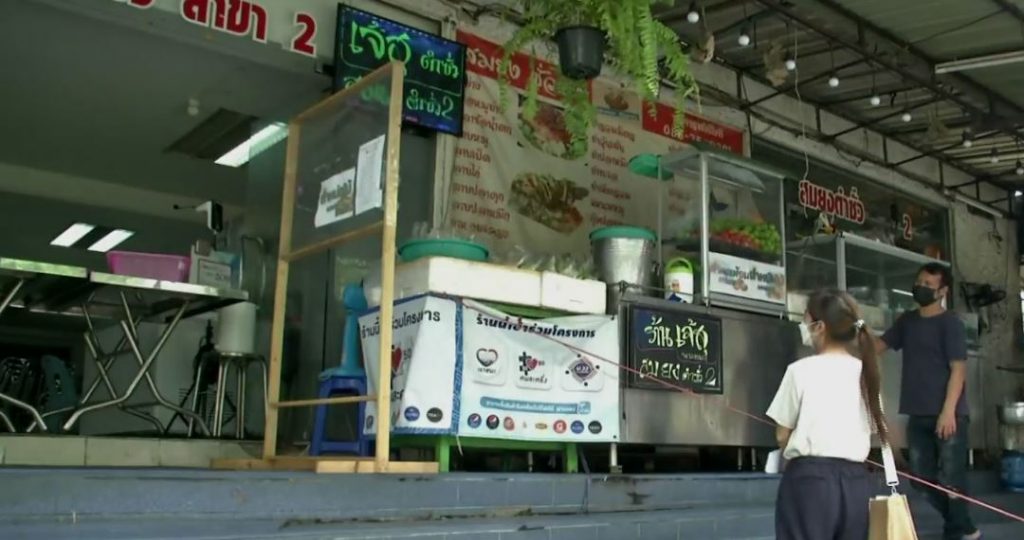 ขณะที่ร้านอาหารในย่านพระราม 9 หลายร้านพร้อมเปิดให้ลูกค้านั่งทานในร้านได้ อย่างร้านข้าวซอยลำดวนฟ้าฮ่ามเชียงใหม่ สาขาพระราม 9 เจ้าของร้านบอกว่า ที่ร้านจะเปิดให้ลูกค้านั่ง 50% ของโต๊ะเก้าอี้ทั้งหมด เพราะร้านเป็นห้องแอร์ แต่ที่เห็นยังมีโต๊ะเก้าอี้เต็มร้าน เพราะไม่มีที่จัดเก็บ แต่เตรียมป้ายมาตั้งเพื่อเว้นระยะห่างระหว่างโต๊ะแล้ว
