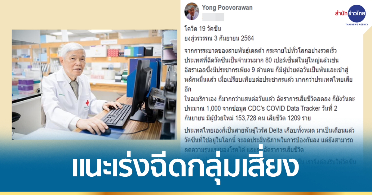 ขณะนี้ผู้ที่เสียชีวิตส่วนใหญ่เป็นผู้ที่ยังไม่ได้รับวัคซีน เราจึงต้องรีบให้วัคซีนในกลุ่มเสี่ยง และสตรีตั้งครรภ์