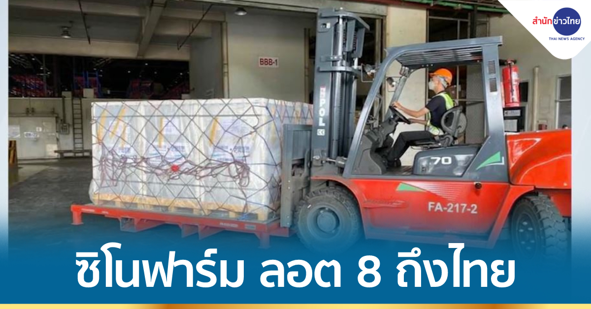 ราชวิทยาลัยจุฬาภรณ์ เปิดเผยว่าวันนี้วัคซีนซิโนฟาร์มลอตที่ 8 จำนวน 2 ล้านโดส เดินทางมาถึงท่าอากาศยานสุวรรณภูมิแล้ว ทำให้จำนวนวัคซีนซิโนฟาร์มที่เข้ามาในไทยตั้งแต่วันที่ 20 มิ.ย.-5 ก.ย.2564 มีจำนวนทั้งหมด 11 ล้านโดส