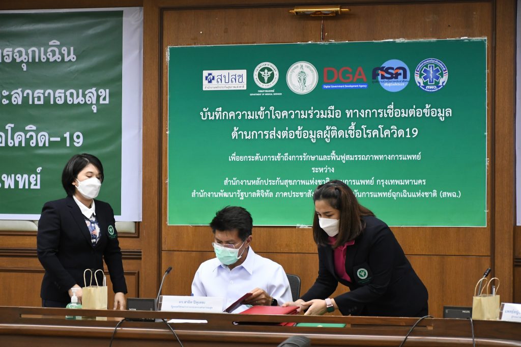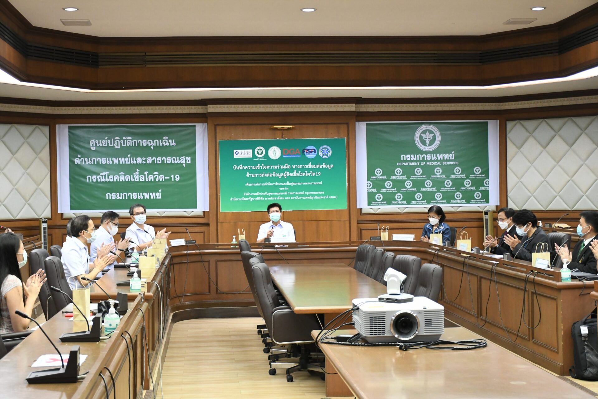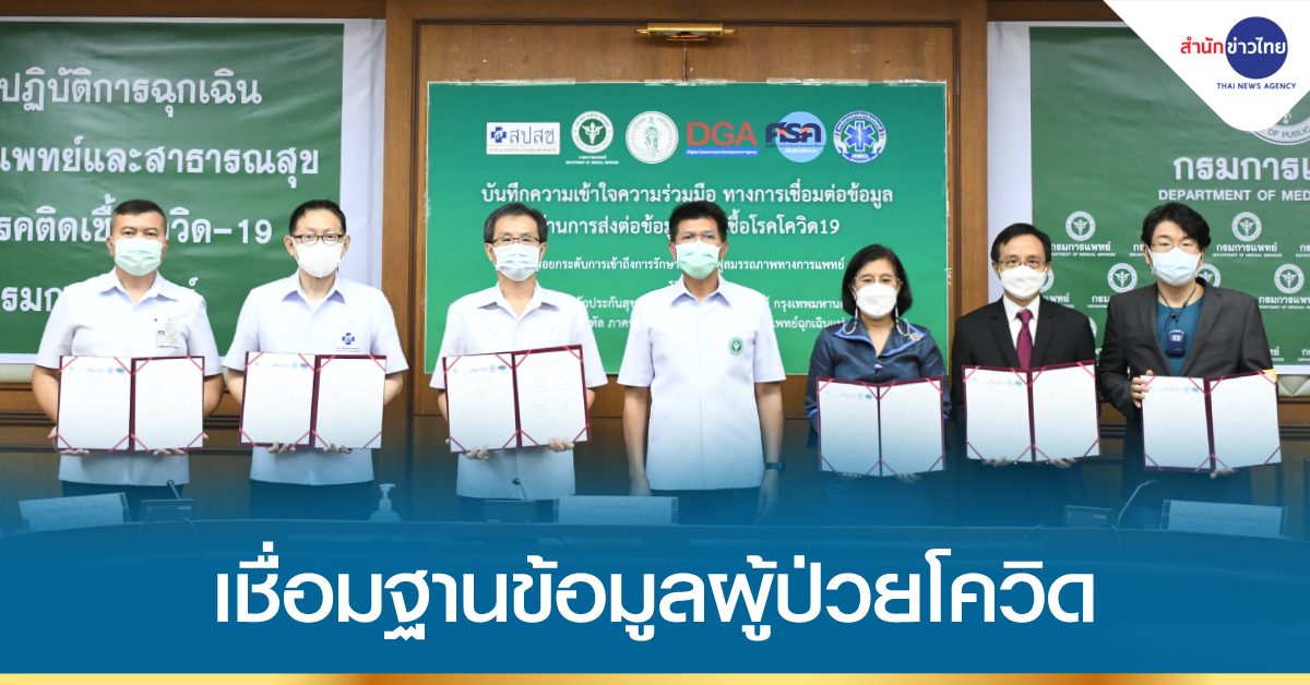 วันนี้ (7 กันยายน 2564) ที่กรมการแพทย์ กระทรวงสาธารณสุข จ.นนทบุรี ดร.สาธิต ปิตุเตชะ รัฐมนตรีช่วยว่าการกระทรวงสาธารณสุข เป็นประธานและสักขีพยาน การบันทึกความเข้าใจความร่วมมือการเชื่อมต่อฐานข้อมูลผู้ติดเชื้อไวรัสโคโรนา 2019 เพื่อยกระดับการเข้าถึงการรักษาของผู้ป่วย และฟื้นฟูสมรรถภาพการแพทย์ ระหว่างกระทรวงสาธารณสุข กรมการแพทย์ โดย นพ.สมศักดิ์ อรรฆศิลป์ อธิบดีกรมการแพทย์, สำนักงานหลักประกันสุขภาพแห่งชาติ โดย นพ.จเด็จ ธรรมธัชอารี เลขาธิการสำนักงานหลักประกันสุขภาพแห่งชาติ, กรุงเทพมหานคร โดย พญ.ป่านฤดี มโนมัยพิบูลย์ ผู้อำนวยการสำนักอนามัย กรุงเทพมหานคร, สำนักงานพัฒนารัฐบาลดิจิทัล (องค์การมหาชน) โดยนายสุพจน์ เธียรวุฒิ ผู้อำนวยการสำนักงานพัฒนารัฐบาลดิจิทัล, สถาบันการแพทย์ฉุกเฉินแห่งชาติ โดยเรืออากาศเอก นพ.อัจฉริยะ แพงมา เลขาธิการสถาบันการแพทย์ฉุกเฉินแห่งชาติ และภาคประชาสังคม โดยนายพณชิต กิตติปัญญางาม ตัวแทนภาคประชาสังคม