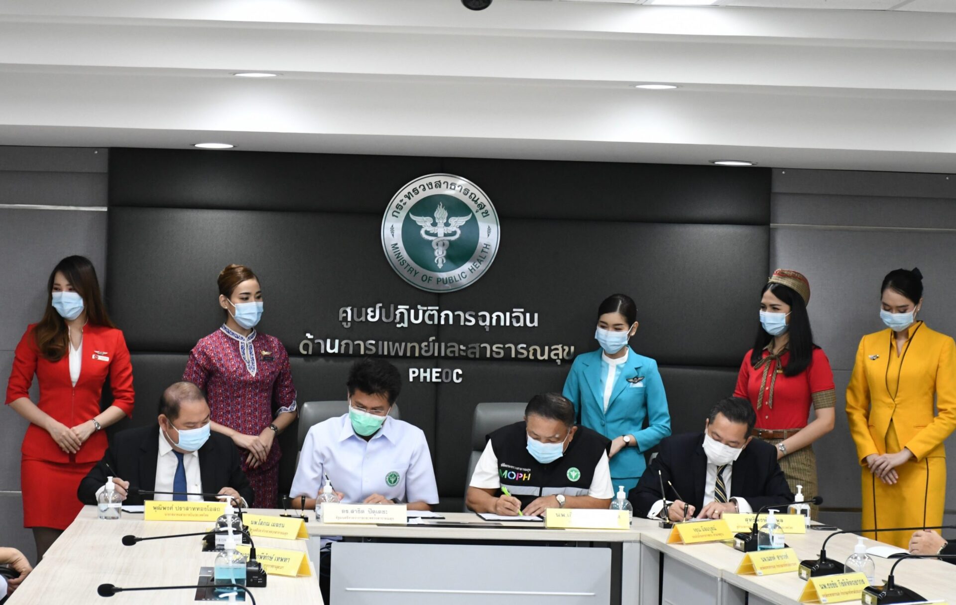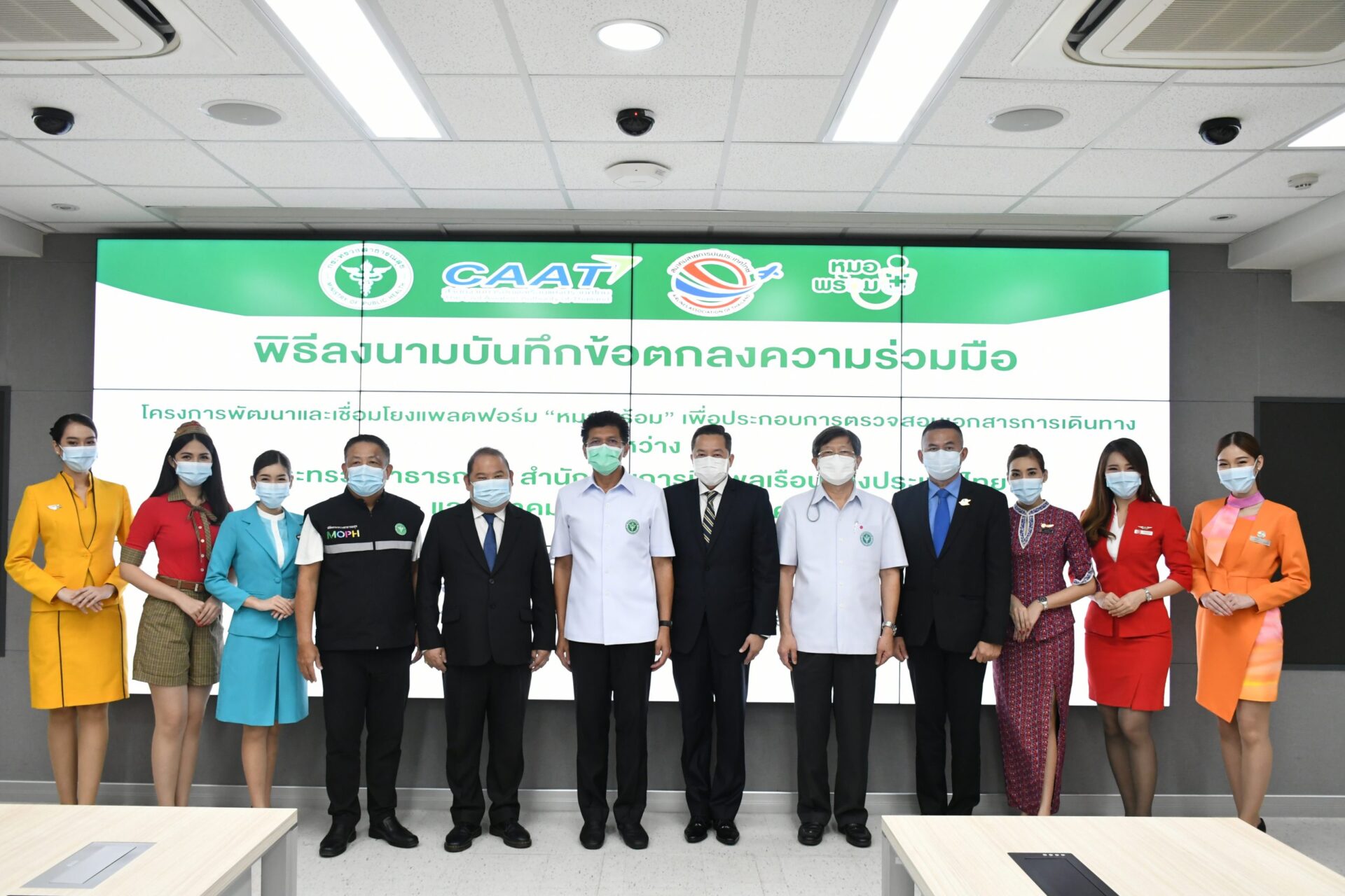 ทั้งนี้ ข้อตกลงในครั้งนี้ กระทรวงสาธารณสุข จะสนับสนุนข้อมูลการฉีดวัคซีนและผลการตรวจทางห้องปฏิบัติการบนแพลตฟอร์ม “หมอพร้อม” เป็น Digital Health Pass ช่วยอำนวยความสะดวกแก่ผู้ประกอบการสายการบินและผู้เดินทางภายในประเทศในการตรวจสอบเอกสาร เพื่อการคมนาคมอย่างปลอดภัย ลดความเสี่ยงของการติดเชื้อ และโอกาสการแพร่ระบาดในสังคม เป็นการคมนาคมวิถีใหม่ที่ปลอดภัยจากโรคระบาด