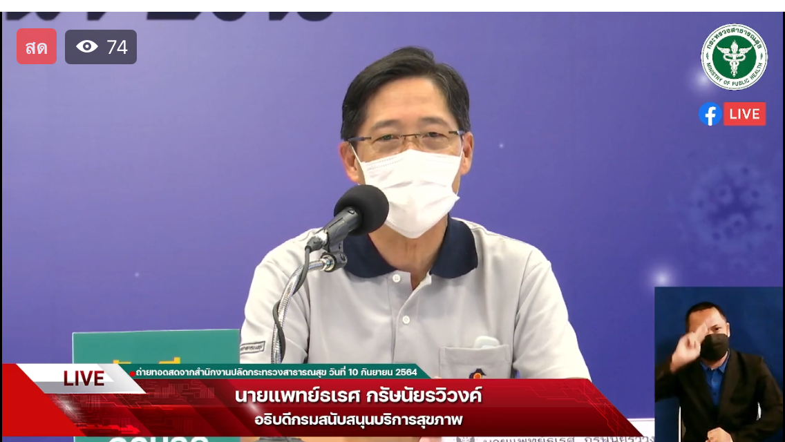 นพ.ธเรศ กรัษนัยรวิวงค์ อธิบดีกรมสนับสนุนบริการสุขภาพ (สบส.) พร้อมด้วย นพ.ภานุวัฒน์ ปานเกตุ รองอธิบดีกรม สบส. แถลงถึงการปรับบทบาทหน้าที่ของอาสาสมัครสาธารณสุขประจำหมู่บ้าน (อสม.) ติดอาวุธประชาชนตรวจแอนติเจน เทสต์ คิท (ATK) ด้วยตัวเอง และป้องกันการติดเชื้อขั้นสูงสุด