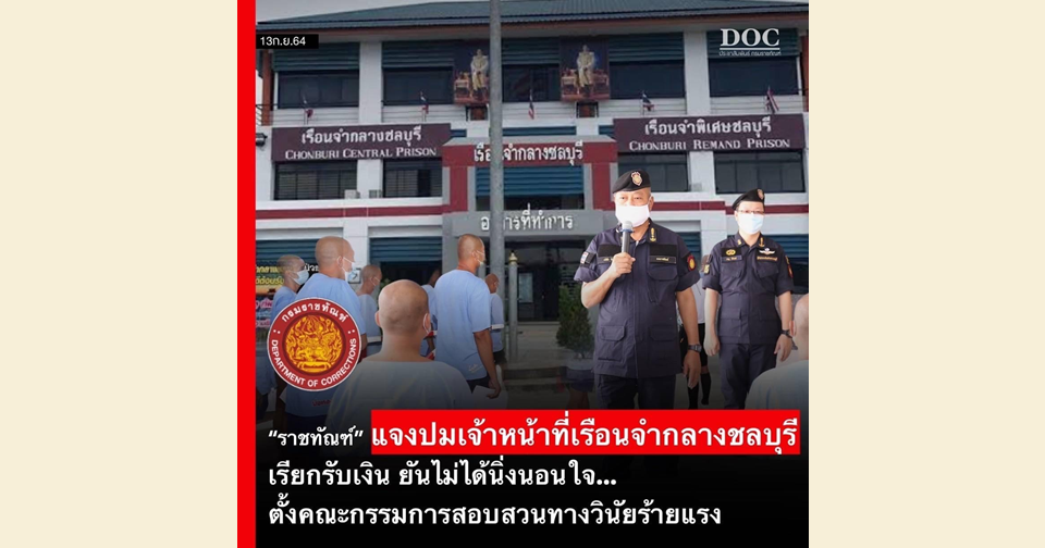 กรมราชทัณฑ์ได้ดำเนินการแต่งตั้งคณะกรรมการสอบสวนทางวินัยอย่างร้ายแรงกับเจ้าหน้าที่รายดังกล่าว ตามคำสั่งกรมราชทัณฑ์ ที่ 558/2563 ลงวันที่ 16 เมษายน 2563 พบว่าเจ้าหน้าที่เรือนจำกลางชลบุรี 1 ราย มีกรณีอันมีมูลที่ควรกล่าวหาว่ากระทำผิดวินัยอย่างร้ายแรง ภายหลังได้สอบข้อเท็จจริงจากผู้เกี่ยวข้องเสร็จสิ้น และกรมราชทัณฑ์ได้ดำเนินการสอบสวนทางวินัยอย่างร้ายแรงกับผู้ถูกกล่าวหาแล้ว ขณะนี้อยู่ระหว่างการดำเนินการทางวินัย ตามข้อ 52 และ 53 ของกฎ ก.พ. และแจ้งให้เจ้าหน้าที่รายดังกล่าว ชี้แจงแก้ข้อกล่าวหาตามบันทึกแจ้งและรับทราบข้อกล่าวหาหลังจากที่ได้รับแจ้งหนังสือภายในระยะเวลาที่กำหนด