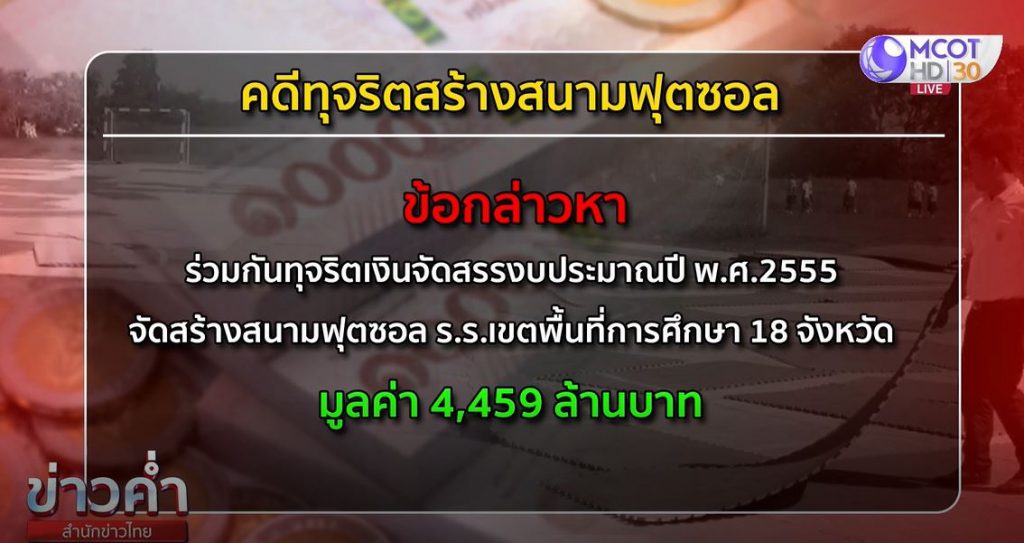 ข้อกล่าวหา ร่วมกันทุจริตเงินจัดสรรงบประมาณปี พ.ศ.2555 จัดสร้างสนามฟุตซอลให้กับโรงเรียนเขตพื้นที่การศึกษา 18 จังหวัด มูลค่า 4,459 ล้านบาท รวมทั้งโรงเรียนเขตพื้นที่การศึกษา เขต 2 จ.นครราชสีมา