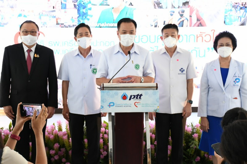 วันนี้ (15 ก.ย.) ที่รพ.ปิยะเวท กทม. นายอนุทิน ชาญวีรกูล รองนายกรัฐมนตรีและรัฐมนตรีว่าการกระทรวงสาธารณสุข เป็นประธานพิธีมอบใบประกาศขอบคุณผู้บริจาค 11 ราย ในการสร้างโรงพยาบาลสนามปิยะเวทไอซียู 120 เตียง เพื่อรองรับผู้ป่วยโควิด 19 อาการรุนแรง โดยมี พญ.เจรียง จันทรกมล ประธานเจ้าหน้าที่บริหาร เครือโรงพยาบาลบางปะกอกและโรงพยาบาลปิยะเวทเข้าร่วม