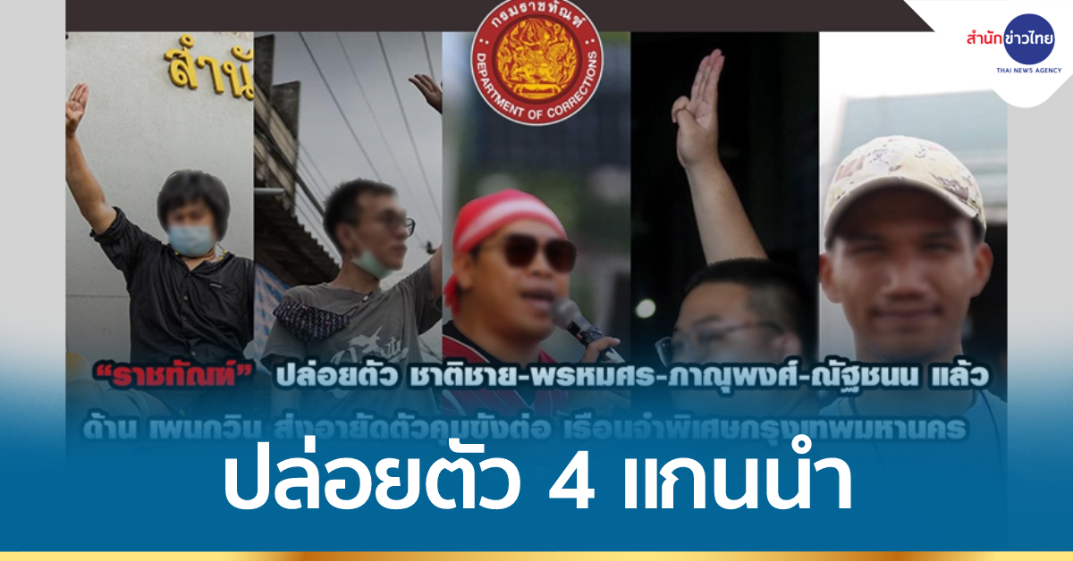 จากกรณีเมื่อวันที่ 15 กันยายน 2564 ศาลอุทธรณ์ภาค 1 มีคำสั่งให้ปล่อยตัวชั่วคราวผู้ต้องขัง จำนวน 5 คน ได้แก่ 1. นายชาติชาย แกดำ 2. นายพริษฐ์ ชิวารักษ์ 3.นายพรหมศร วีระธรรมจารี 4. นายภาณุพงศ์ จาดนอก และ 5. นายณัฐชนน ไพโรจน์ ซึ่งผู้ต้องขังลำดับที่ 1-4 ถูกคุมขังอยู่เรือนจำอำเภอธัญบุรี สำหรับผู้ต้องขัง ลำดับที่ 5. ถูกคุมขังอยู่ที่เรือนจำชั่วคราวรังสิต โดยทุกคนได้รับการปล่อยตัวตามคำสั่งศาลอุทธรณ์ และติดอุปกรณ์ติดตามตัวอิเล็กทรอนิกส์ (EM)