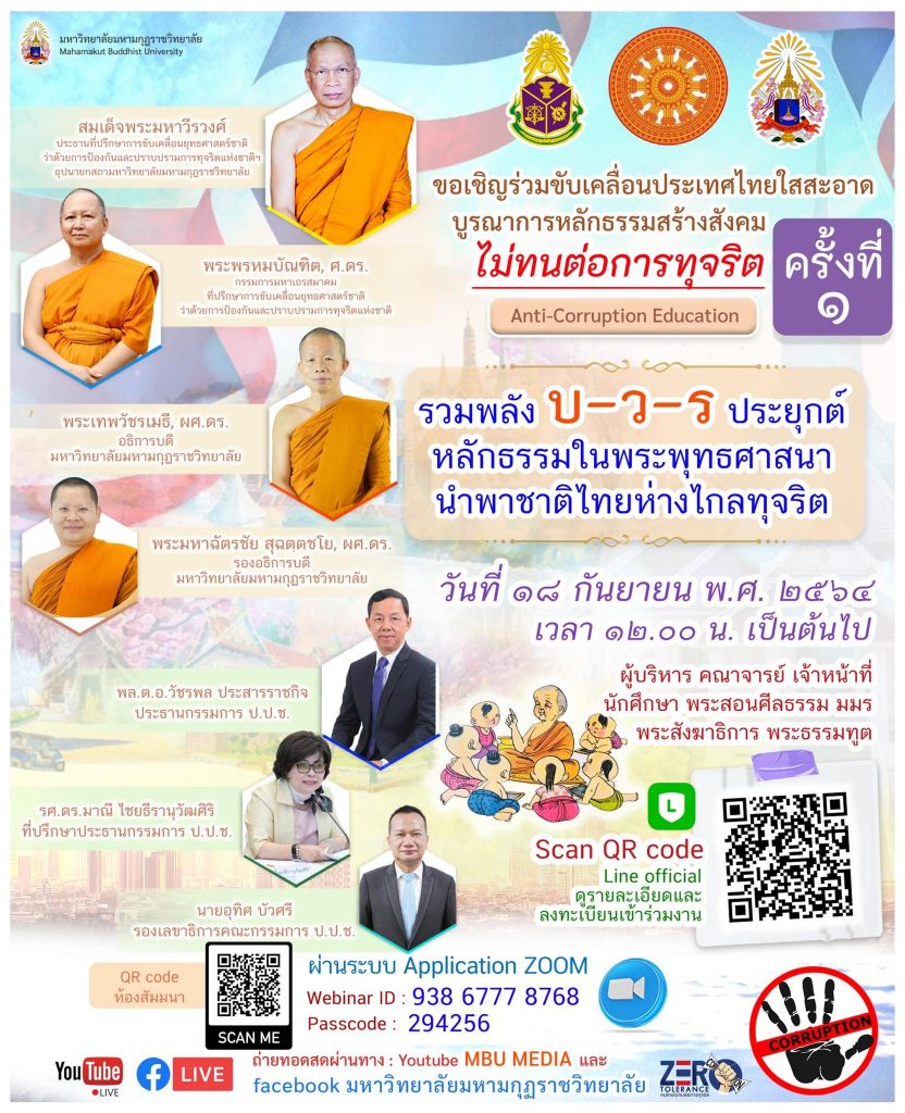 กทม.16ก.ย.-มมร และ ป.ป.ช. ร่วมขับเคลื่อนความร่วมมือทางศาสนา ต่อต้านการทุจริต พร้อมจัดเสวนาในรูปแบบ ออนไลน์ 4 ภูมิภาคทั่วประเทศ