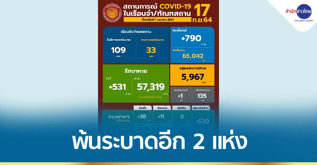 กรมราชทัณฑ์ 17 ก.ย.-กรมราชทัณฑ์ รายงานสถานการณ์โควิด-19 ประจำวัน มีเรือนจำพ้นจากการระบาดเพิ่ม 2 แห่งวันนี้