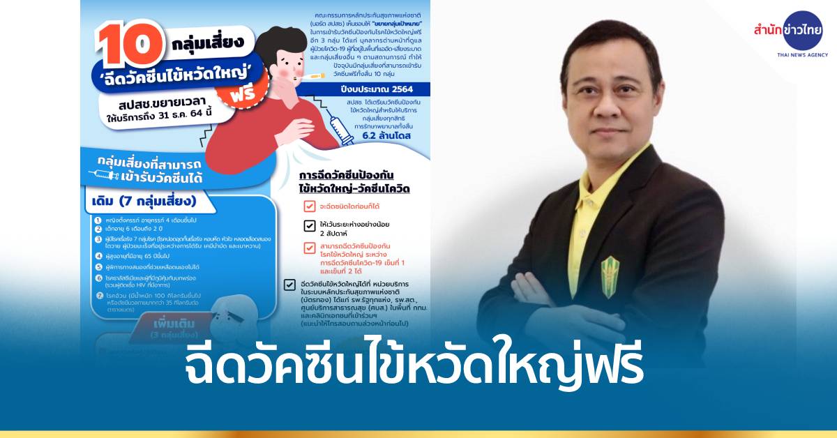 นพ.สาธิต กล่าวว่า ปกติแล้ว สปสช.ให้สิทธิประโยชน์ฉีดวัคซีนไข้หวัดใหญ่แก่ประชาชน 7 กลุ่มเสี่ยง คือ ผู้ป่วยโรคเรื้อรัง อาทิ โรคหอบหืด โรคปอดอุดกั้นเรื้อรัง เบาหวาน โรคหลอดเลือดสมอง ไตวายเรื้อรัง โรคหัวใจ ผู้ป่วยมะเร็งที่กำลังรักษาด้วยเคมีบำบัด กลุ่มผู้สูงอายุที่เกิน 65 ปีขึ้นไป กลุ่มเด็กเล็กเด็กอายุตั้งแต่ 6 เดือนถึง 2 ขวบ กลุ่มผู้พิการ กลุ่มผู้ที่มีน้ำหนักเกิน 100 กก. ขึ้นไปและกลุ่มหญิงตั้งครรภ์ โดยเริ่มรณรงค์ให้ฉีดมาตั้งแต่เดือน พ.ค. ที่ผ่านมา ซึ่งปกติแล้วแต่ละปีจะได้รับจัดสรรงบประมาณ 2 ล้านโดส แต่ปีนี้เป็นปีพิเศษ รัฐบาลจัดสรรงบประมาณจำนวน 6.4 ล้านโดส ซึ่งตั้งแต่เดือน พ.ค.จนถึงปัจจุบัน ให้บริการไปเกือบ 2 ล้านโดส ยังมีวัคซีนเหลืออีกประมาณ 4 ล้านโดส