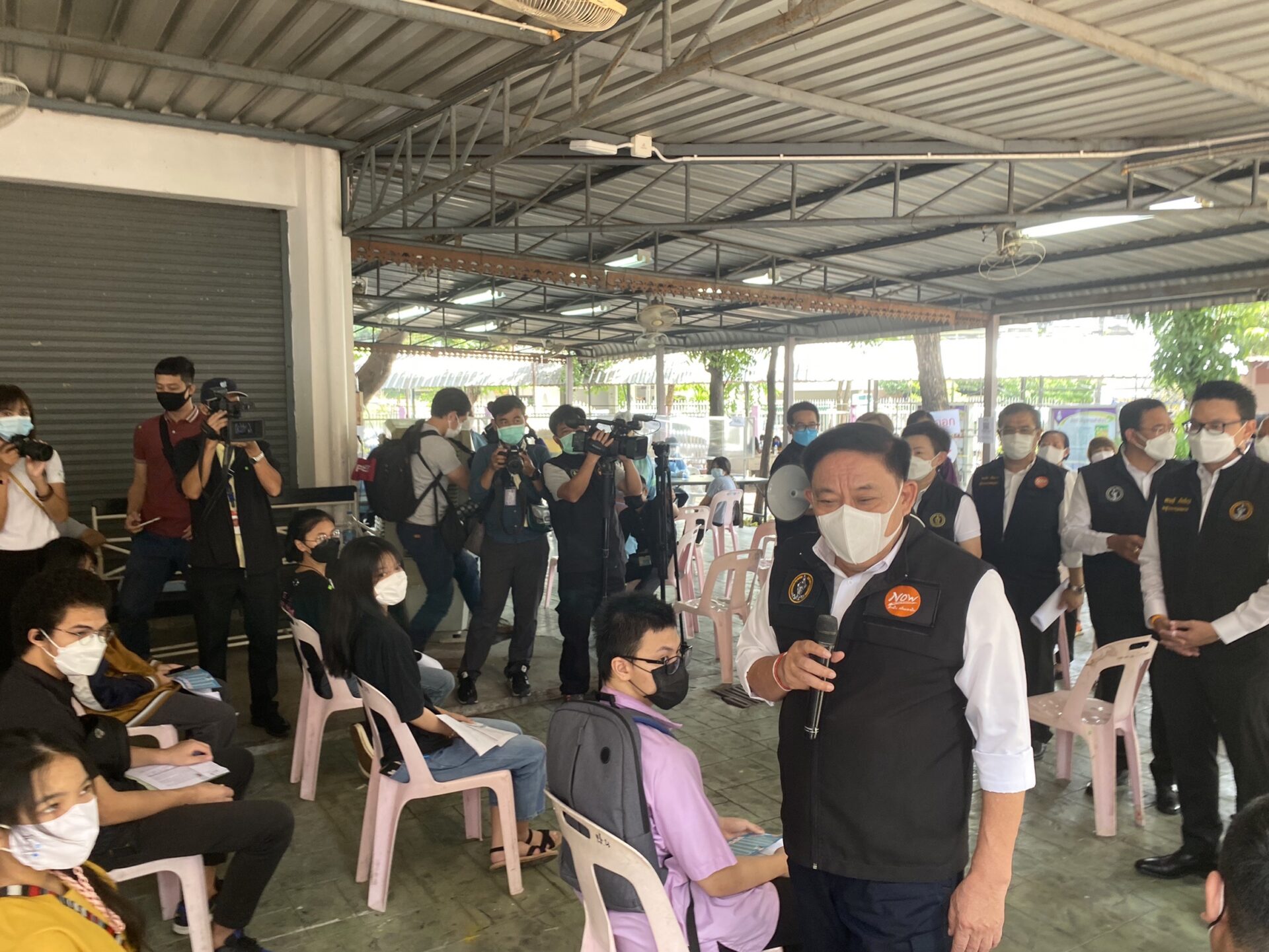 กทม.4ต.ค.-โรงเรียนในสังกัด กทม.เริ่มฉีดวัคซีนไฟเซอร์ให้กับนักเรียนแล้วเป็นวันแรก โดยวันนี้เป็นการฉีดในระดับมัธยมปลายที่สมัครใจ โดยส่วนใหญ่มีผู้ปกครองมาส่งและคอยให้กำลังใจ
