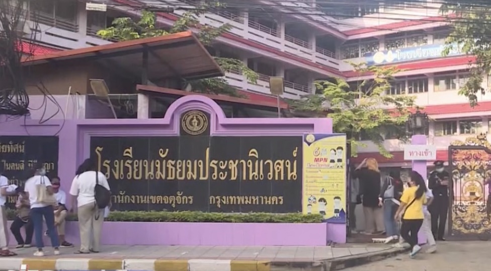 ที่โรงเรียนมัธยมประชานิเวศน์ เขตจตุจักร ซึ่งเป็น 1ใน 6 โรงเรียนสังกัด กทม. วันนี้ (4 ต.ค.) เริ่มฉีดวัคซีนไฟเซอร์ให้กับนักเรียนมัธยมปลายแล้วเป็นวันแรก โดยมีนักเรียนทยอยเดินทางเข้ามาตั้งแต่ช่วงเช้า ซึ่งพบว่ามีทั้งแบบที่เดินทางมาเอง และส่วนใหญ่มีผู้ปกครองมาส่งพร้อมรอให้กำลังใจลูกฉีดด้วย ซึ่งทางโรงเรียนมีการแบ่งช่วงเวลานัดนักเรียนเข้ามารับการฉีด