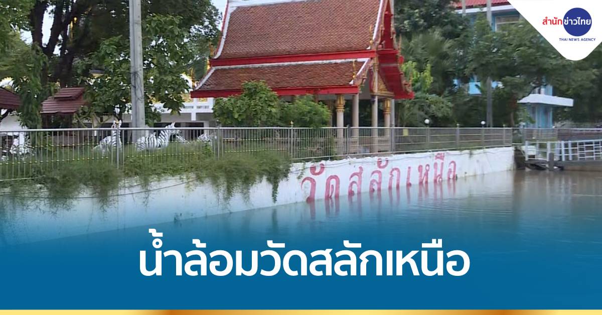นนทบุรี 7 ต.ค.-วัดสลักเหนือ ที่อยู่ริมน้ำเจ้าพระยา อ.ปากเกร็ด จ.นนทบุรี เป็นหนึ่งจุดที่ต้องเฝ้าระวังมากเป็นพิเศษ หลังมีการเตือนว่าระดับน้ำเจ้าพระยาจะเพิ่มสูงขึ้นอีก ขณะนี้พบว่าระดับน้ำเจ้าพระยาด้านนอกอยู่สูงกว่าแนวพื้น มีน้ำล้อมรอบวัดแล้ว