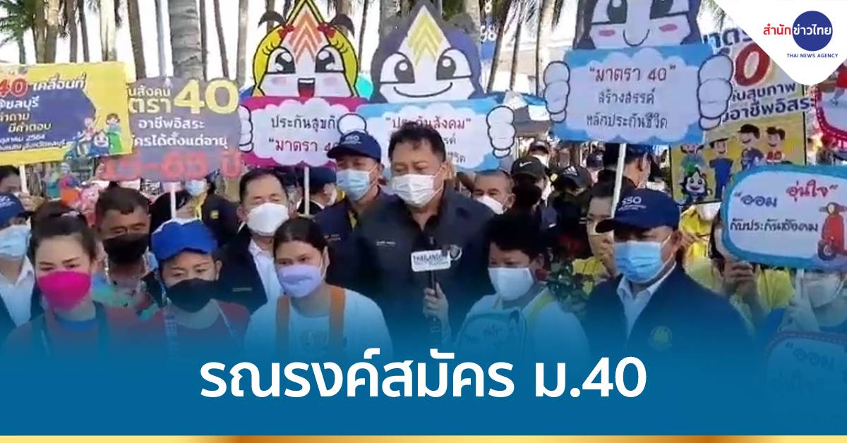 รมว.แรงงาน กล่าวว่า ตามนโยบายของรัฐบาลภายใต้การบริหารประเทศของพลเอก ประยุทธ์ จันทร์โอชา นายกรัฐมนตรี และพลเอก ประวิตร วงษ์สุวรรณ รองนายกรัฐมนตรี ซึ่งกำกับดูแลกระทรวงแรงงาน มีความห่วงใยพี่น้องแรงงานอิสระในพื้นที่ที่ได้รับผลกระทบจากมาตรการควบคุมการแพร่ระบาดของโควิด-19 โดยที่ผ่านมาได้เปิดโอกาสให้ผู้ประกอบอาชีพอิสระในพื้นที่ได้รับผลกระทบสามารถสมัครเป็นผู้ประกันตนมาตรา 40 เพื่อรับเงินช่วยเหลือเยียวยาจากรัฐบาลคนละ 5,000 บาทต่อเดือน ซึ่งจังหวัดชลบุรี เป็น 1 ใน 13 จังหวัด ก่อนหน้านี้ที่ผู้ประกันตนมาตรา 40 ได้รับเงินเยียวคนละ 5,000 บาท ต่อเดือน จำนวน 2 เดือน ซึ่งเมื่อ 1 กันยายน 2564 ศูนย์บริหารสถานการณ์แพร่ระบาดของโรคติดเชื้อไวรัสโคโรนา 2019 (ศบค.) และจังหวัดชลบุรี ได้ประกาศคลายล็อก ผู้ประกันตนมาตรา 40 ในจังหวัดชลบุรี โดยเฉพาะผู้ประกอบอาชีพอิสระบริเวณชายหาดบางแสน ก็ได้กลับมาประกอบอาชีพอิสระของตนเอง