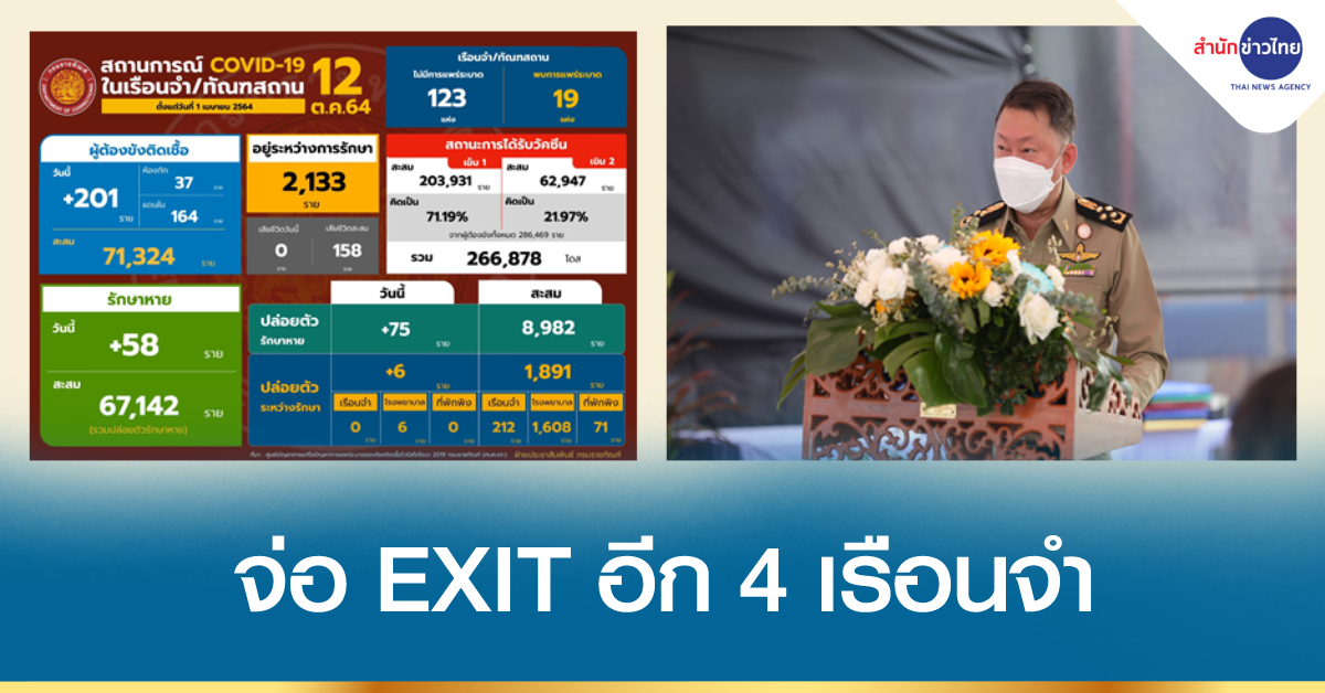 กรมราชทัณฑ์ 12 ต.ค.-กรมราชทัณฑ์ เตรียม EXIT เรือนจำเพิ่ม 4 แห่ง ในสัปดาห์นี้