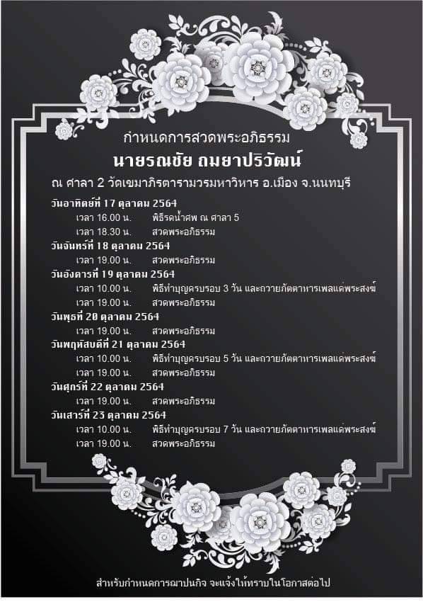 หลังการจากไปของ “อ๊อด คีรีบูน” หรือนายรณชัย ถมยาปริวัฒน์ อายุ 57 ปี ศิลปินชื่อดังยุค 80 ด้วยอาการป่วยมะเร็งสมอง วันนี้ มีพิธีรดน้ำศพ ที่ศาลา 5 วัดเขมาภิรตารามราชวรวิหาร อ.เมือง จ.นนทบุรี โดยมีศิลปินร่วมยุค อาทิ ปิง ฟรุ้ตตี้ เท่ห์ อุเทน พรหมมินทร์ และเพื่อนในวงการเพลง รวมทั้งแฟนคลับเดินทางมาร่วมแสดงความอาลัย โดยพิธีรดน้ำ นำโดย พระครูสมุห์สุชิน ปริปุณโณ เจ้าอาวาสวัดธรรมสถิต จ.ระยอง ซึ่ง อ๊อด คีรีบูน เป็นลูกศิษย์ใกล้ชิดและเคยอุปสมบทที่วัดดังกล่าว และครอบครัวได้จัดพิธีให้ญาติ เพื่อนสนิท และแฟนคลับได้รดน้ำ โดยขอให้เว้นระยะห่างตามมาตรการป้องกันการแพร่ระบาดของโควิด ทั้งนี้ญาติได้แจ้งกำหนดการพิธีสวดพระอภิธรรม อ๊อด คีรีบูน ตั้งแต่วันนี้ไปถึงวันที่ 23 ตุลาคม ที่ศาลา 2 วัดเขมาฯ และญาติอยู่ระหว่างตัดสินใจว่าจะบรรจุศพไว้ 100 วัน หรือจัดพิธีฌาปนกิจ ซึ่งจะได้แจ้งอีกครั้ง