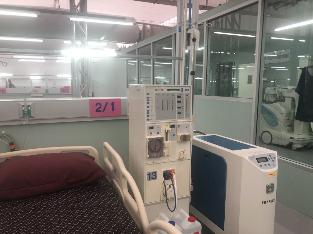 นพ.สมศักดิ์ กล่าวว่า รพ.ดังกล่าวจะมารองรับผู้ป่วยในช่วงการเปิดประเทศ แม้สถานการณ์การติดเชื้อโควิด-19 ใน กทม. ผู้ป่วยลดลงเหลือแค่ 1,000 คนต่อวัน ไม่มากเหมือนในอดีต โดยภายในรพ.สนาม จะมีเตียงรองรับผู้ป่วย 200 เตียง รองรับผู้ป่วยสีแดง 12 เตียง ผู้ป่วยสีเหลือง 188 เตียง ส่วนเครื่องมือแพทย์ภายใน มีการติดตั้งเครื่องไฮโฟลว์, เครื่องฟอกไต สำหรับผู้ป่วยบางคนที่มีอาการโรคไต หรือไตมีปัญหาจากโรค และมีระบบกล้องวงจรปิดไว้ติดตามผู้ป่วยอย่างใกล้ชิด หากฉุกเฉินหรือป่วยหนัก ก็สามารถส่งข้ามต่อไปรักษา รพ.เลิดสิน ที่อยู่ฝั่งตรงข้าม ขณะเดียวกันตอนนี้มีความร่วมมือกับโรงเรียนแพทย์ในการรับส่งต่อผู้ป่วยโควิด เพื่อเปิดทางให้สถานพยาบาลต่างๆ กลับมาให้บริการผู้ป่วยตามปกติ