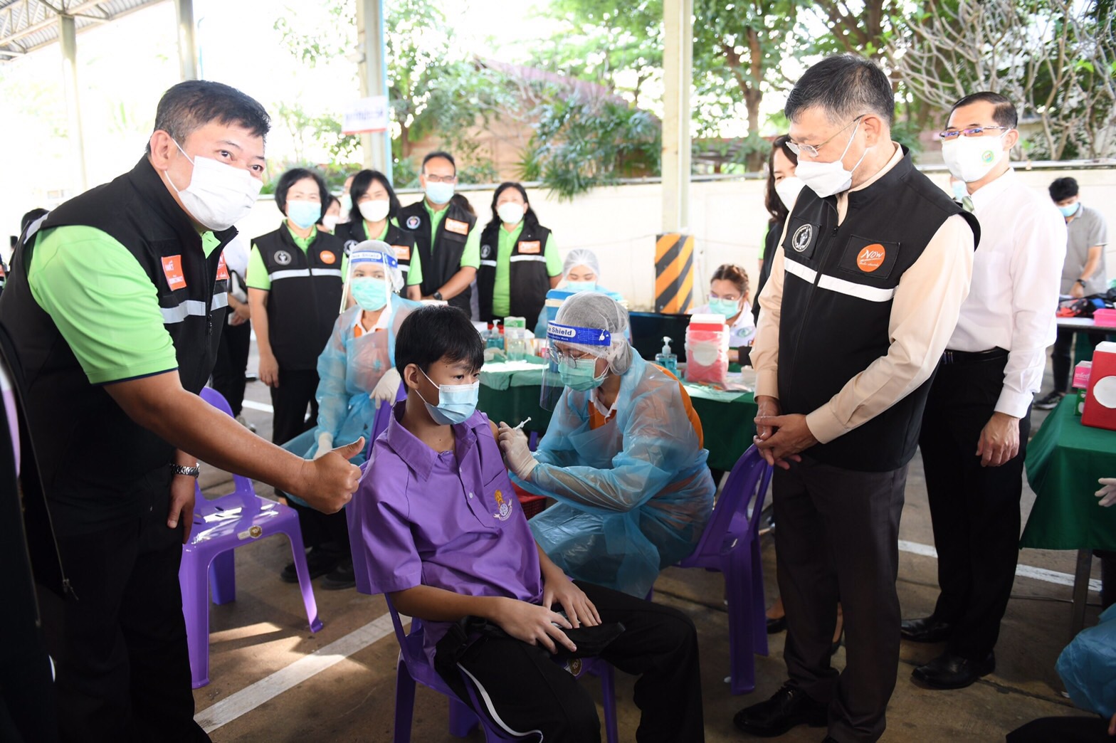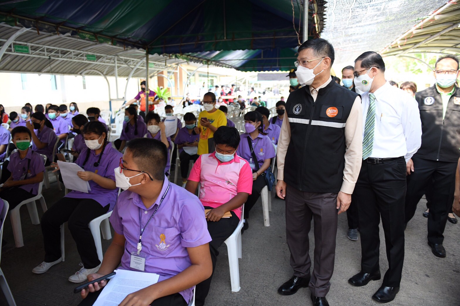 นายขจิต ชัชวานิชย์ ปลัดกรุงเทพมหานคร (ปลัด กทม.)ตรวจเยี่ยมการฉีดวัคซีนให้กับนักเรียนโรงเรียนสังกัดกรุงเทพมหานคร (กทม.) ระดับมัธยมศึกษาตอนต้น ณ สำนักงานเขตทวีวัฒนา โดยมีคณะผู้บริหารสำนักการศึกษา สำนักอนามัย สำนักงานเขตทวีวัฒนา สำนักงานเขตตลิ่งชัน และผู้เกี่ยวข้อง ให้ข้อมูลและรายละเอียดการดำเนินการ