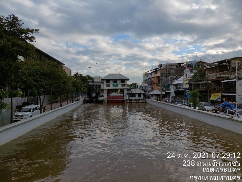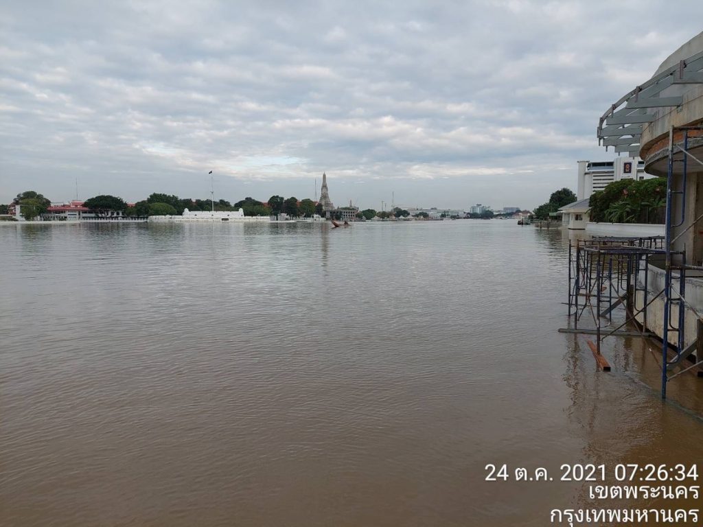 (24 ต.ค. 64) พล.ต.อ.อัศวิน ขวัญเมือง ผู้ว่าราชการกรุงเทพมหานคร เปิดเผยถึงสถานการณ์น้ำเหนือไหลผ่านเขื่อนเจ้าพระยา ว่า วันนี้ (06.00 น.) ปริมาณน้ำของกรมชลประทานที่อำเภอบางไทรตรวจวัดปริมาณน้ำไหลผ่านกทม. เฉลี่ย 3,252 ลูกบาศก์เมตรต่อวินาที ระดับน้ำในแม่น้ำเจ้าพระยาบริเวณปากคลองตลาดของ กทม. อยู่ที่ระดับ 2.06 เมตร จากระดับน้ำทะเลปานกลาง ซึ่งยังต่ำกว่าระดับคันกั้นน้ำแม่น้ำเจ้าพระยาของกรุงเทพมหานครอยู่ประมาณ 0.94 เมตร จึงยังไม่ได้ผลกระทบจากน้ำที่ปล่อยมาจากเขื่อนเจ้าพระยาและจากน้ำขึ้นเต็มที่แต่อย่างใด