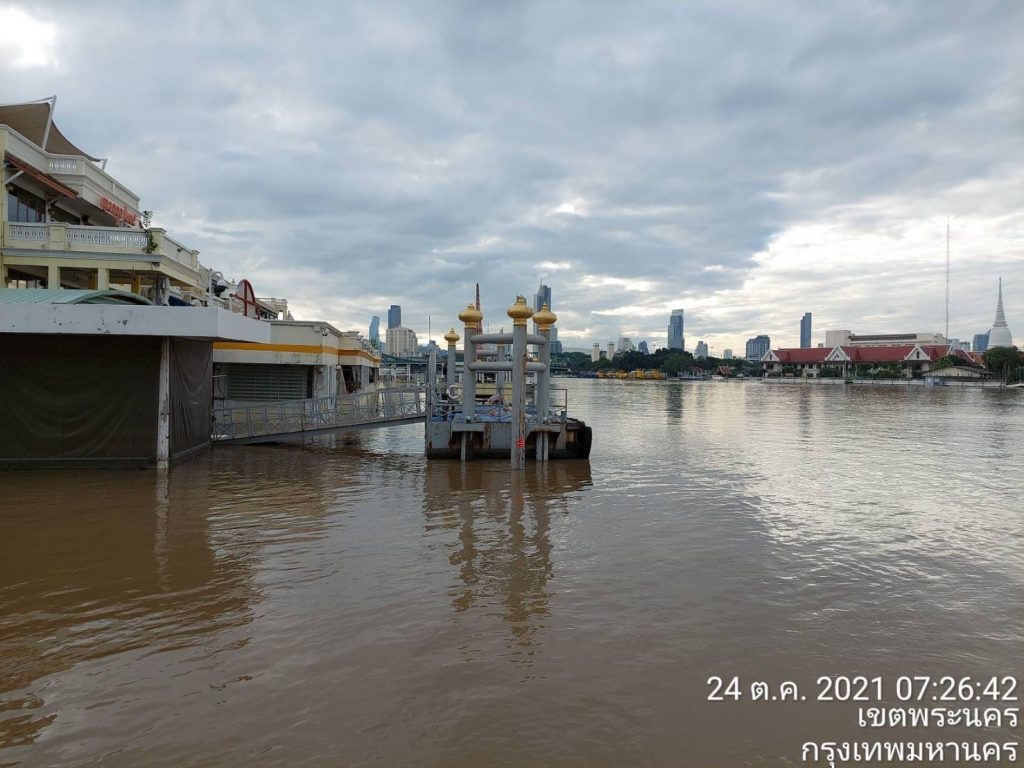 กทม. 24 ต.ค.- น้ำเหนือไหลผ่านแม่น้ำเจ้าพระยาเฉลี่ย 3,252 ลบ.ม./วินาที ยังไม่ส่งผลกระทบ กทม. เฝ้าระวังต่อเนื่อง ช่วงวันที่ 23 – 30 ต.ค.64 ระดับน้ำในแม่น้ำเจ้าพระยาบริเวณท้ายเขื่อนเจ้าพระยา เพิ่มสูงขึ้น ขอให้ชุมชนที่อยู่นอกคันกั้นน้ำเจ้าพระยา ติดตามสถานการณ์น้ำอย่างใกล้ชิด