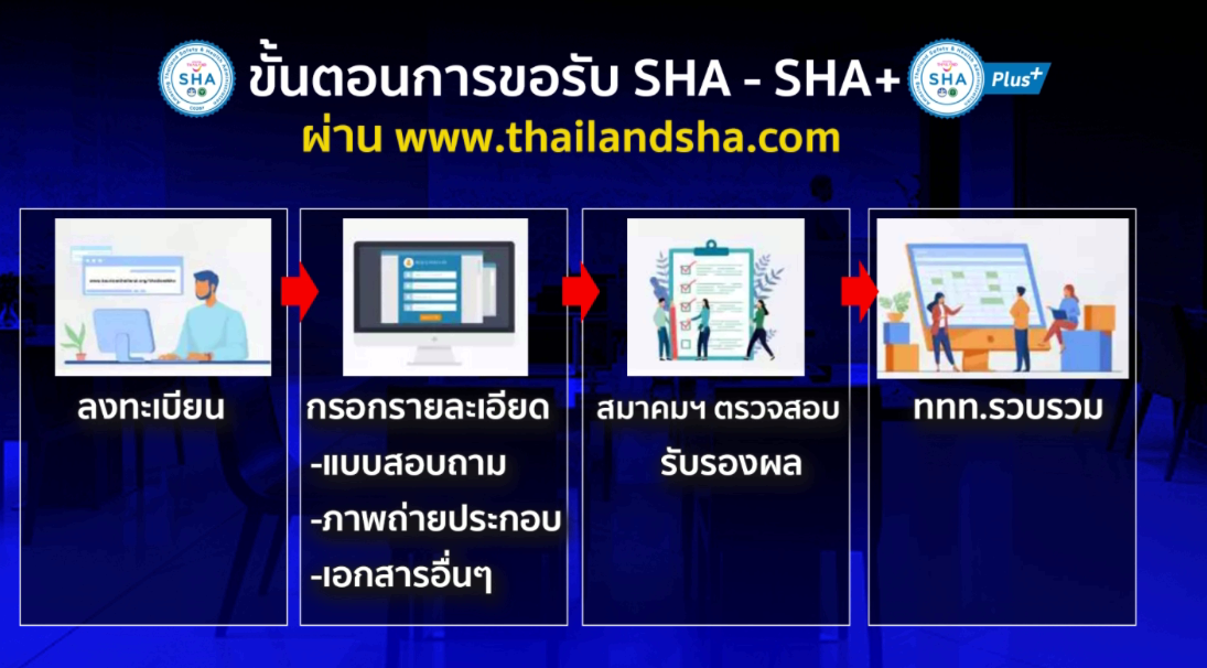 (SHA หรือ Safety & Health Administration) คือ แนวปฏิบัติที่เป็นมาตรฐานภาคสมัครใจสำหรับผู้ประกอบการ หรือ ข้อกำหนดเบื้องต้นที่สถานประกอบการพึงมี เพื่อป้องกัน COVID-19 ซึ่งมาจากมาตรการด้านสาธารณสุขบวกกับมาตรฐานของสินค้าทางการท่องเที่ยว ดังนั้นสัญลักษณ์ SHA จะเป็นการรับรองคุณภาพของสถานประกอบการนั้นๆ โดยผู้ประกอบการต้องยื่นเรื่องขอผ่านสมาคม เช่น สมาคมโรงแรม เมื่อได้รับสัญลักษณ์แล้ว ผู้ประกอบการจะถูกประเมินโดยผู้ใช้บริการผ่านช่องทางแอปพลิเคชัน รวมถึงมีการสุ่มตรวจจากหน่วยงานภายใต้กระทรวงการท่องเที่ยวและกีฬาเป็นระยะ