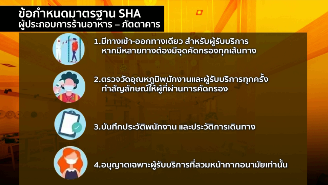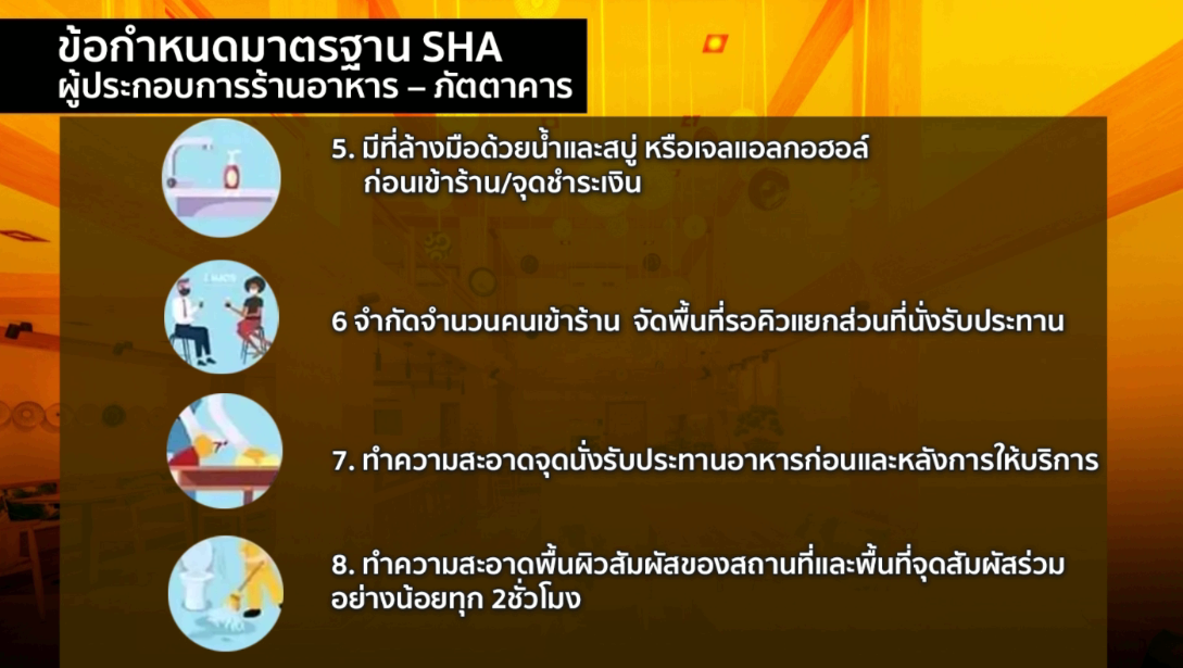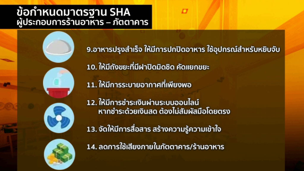 ส่วนข้อกำหนดมาตรฐาน SHA สำหรับผู้ประกอบการ (ภัตตาคาร / ร้านอาหาร) ประกอบด้วยอะไรบ้าง