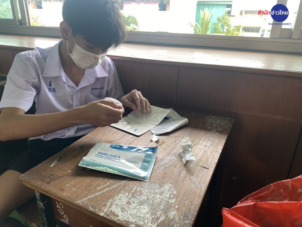 ซึ่งวันนี้หลังการเข้าแถวหน้าชั้นเรียน จะมีการตรวจ ATK นักเรียนทุกคนที่กลับเข้ามาเรียนในวันแรก ซึ่งตามมาตรการจะต้องมีการสุ่มตรวจ ATK เป็นรายสัปดาห์ สัปดาห์ละ10% ของนักเรียนที่กลับมาเรียน.-สำนักข่าวไทย