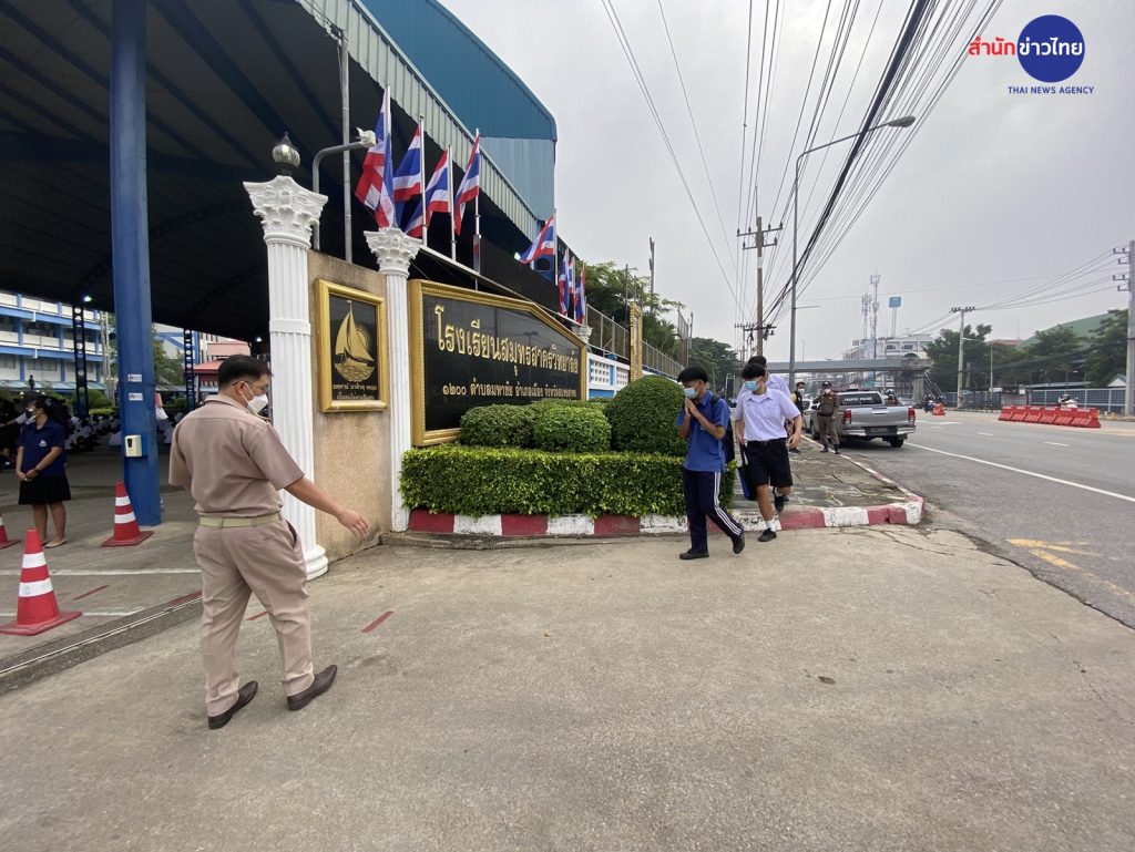 วันนี้โรงเรียนสมุทรสาครวิทยาลัย จัดเป็นโรงเรียนขนาดใหญ่ เปิดเรียนที่โรงเรียนครั้งแรกหลังจากปิดเรียนไปนานกว่าหนึ่งปี เนื่องจากเจอคลัสเตอร์ตลาดกุ้งเมื่อปีแล้ว ทำให้น้องๆหลายคนรู้สึกตื่นเต้นที่จะได้กลับมาพบเพื่อนอีกครั้ง แต่ทุกคนก็บอกว่าผู้ปกครองกำชับทั้งการคุยกับเพื่อน กินอาหาร โดยโรงเรียนให้ทุกคนนำช้อนส้อมและแก้วน้ำส่วนตัวมาเองด้วย