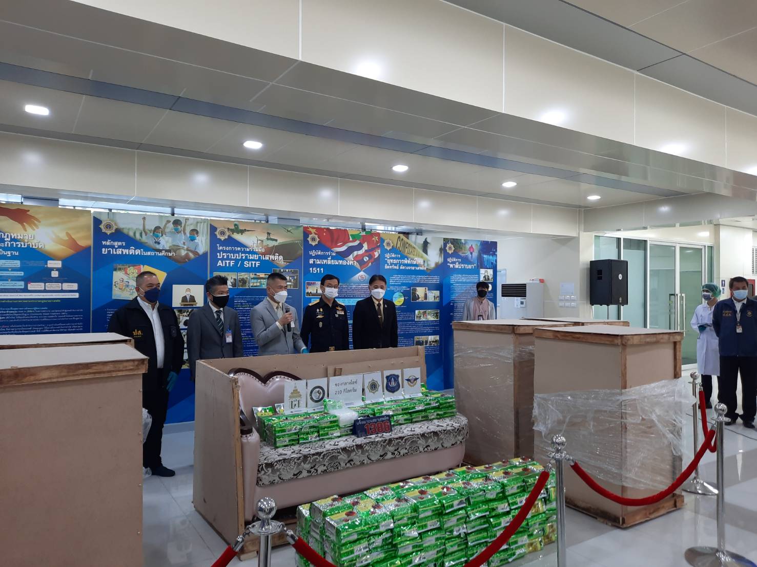 นายวิชัย ไชยมงคล เลขาธิการคณะกรรมการป้องกันและปราบปรามยาเสพติด (ป.ป.ส.) แถลงผลจับกุมขบวนการค้ายาเสพติดเตรียมส่งต่อไปประเทศมาเลเซีย โดยมีศุลกากร กองบัญชาการตำรวจปราบปรามยาเสพติด และศูนย์รักษาความปลอดภัย (ศรภ.) ร่วมปฏิบัติการจับกุมนักค้ายาเสพติด พร้อมไอซ์ น้ำหนัก 210 กิโลกรัม ได้ผู้ต้องหา 1 ราย ทราบชื่อ น.ส.สุภาวดี เอี่ยมอุไร อายุ 26 ปี ชาวจังหวัดสมุทรปราการ พร้อมยาเสพติดให้โทษประเภท 1 (ไอซ์) น้ำหนัก 210 กิโลกรัม ซุกซ่อนอยู่ในลังไม้ขนาดเล็ก 9 ลัง ขนาดใหญ่ 1 ลัง ในลังขนาดเล็กมีโซฟาบรรจุลังละ 2 ตัว รวม 18 ตัว ลังใหญ่ มี โซฟายาว 1 ตัว ตรวจสอบพบถุงชาจีน ภายในบรรจุไอซ์ ทั้งหมด 210 ถุง น้ำหนักรวมประมาณ 210 กิโลกรัม