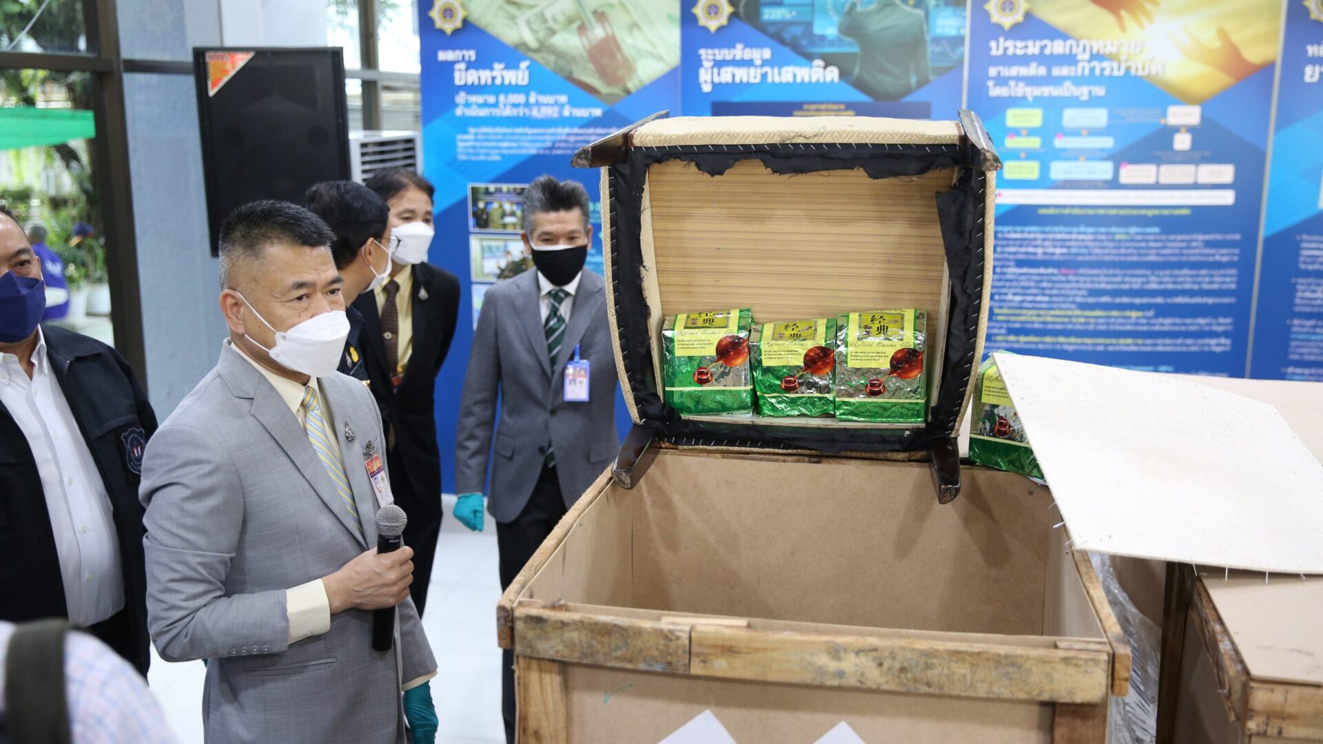 เลขาธิการ ป.ป.ส.กล่าวว่า กรณีนี้เจ้าหน้าที่ดำเนินการสืบสวนจนพบว่ามีผู้ติดต่อส่งโซฟาไปยังประเทศมาเลเซียและจะนำของมาส่งที่บริษัทขนส่งเอกชนแห่งหนึ่ง เมื่อวันที่ 8 พ.ย.ที่ผ่านมา โดยจะบรรทุกขนส่งทางเรือ จึงติดตามตรวจค้น พบพิรุธว่า เป็นโซฟาไม่ได้คุณภาพ หีบห่อไม่เรียบร้อย ไม่น่าเป็นสินค้าออก จากการสอบปากคำผู้ต้องหา อ้างว่าได้รับการว่าจ้างมาอีกที วงเงิน 35,000 บาท ให้จัดส่งสินค้าดังกล่าว ซึ่งตรงนี้เชื่อว่าเชื่อมโยงกับกลุ่มนักค้ายาเสพติดในประเทศเพื่อนบ้าน ส่งจากต้นทางที่ชายแดนภาคตะวันออกเฉียงเหนือของไทย โดยใช้ประเทศไทยเป็นทางผ่าน เนื่องจากปริมาณการใช้ยาไอซ์และเฮโรอีนในไทยมีไม่ถึง 10% ประเทศไทยจึงมักถูกเป็นทางผ่าน หากส่งยาไอซ์ไปถึงประเทศปลายทาง มูลค่าราคาจะสูงขึ้นเป็น10เท่า