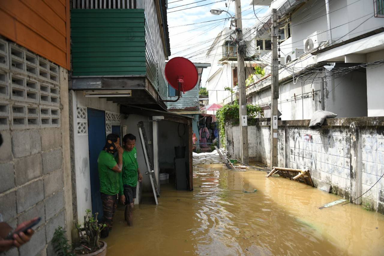 พล.ต.อ.อัศวิน ขวัญเมือง ผู้ว่าราชการกรุงเทพมหานคร (ผู้ว่าฯกทม.) ลงพื้นที่ติดตามสถานการณ์น้ำในแม่น้ำเจ้าพระยาและมอบสิ่งของช่วยเหลือประชาชนที่อาศัยในชุมชนบ้านบุ ตลาดวัดสุวรรณาราม เขตบางกอกน้อย โดยมีนางสุธาทิพย์ สนเอี่ยม รองปลัด กทม.พร้อมด้วยคณะผู้บริหาร กทม.สำนักการระบายน้ำ สำนักป้องกันและบรรเทาสาธารณภัย สำนักงานเขตบางกอกน้อย และหน่วยงานที่เกี่ยวข้อง ร่วมลงพื้นที่ โดยบริเวณชุมชนบ้านบุ ตลาดวัดสุวรรณาราม ได้รับผลกระทบจากน้ำในคลองบางกอกน้อยลอดใต้แนวป้องกันน้ำท่วมเข้ามา เบื้องต้นทางสำนักงานเขตฯและกองทัพเรือ ได้เรียงกระสอบทรายเป็นแนวป้องกันชั่วคราว พร้อมทั้งสูบน้ำที่ท่วมขังออกไป จากนั้นจะประเมินสภาพความเสียหายอีกครั้ง