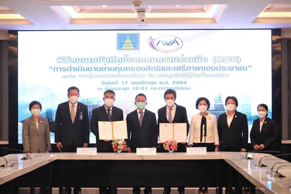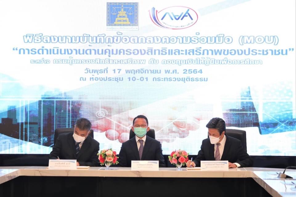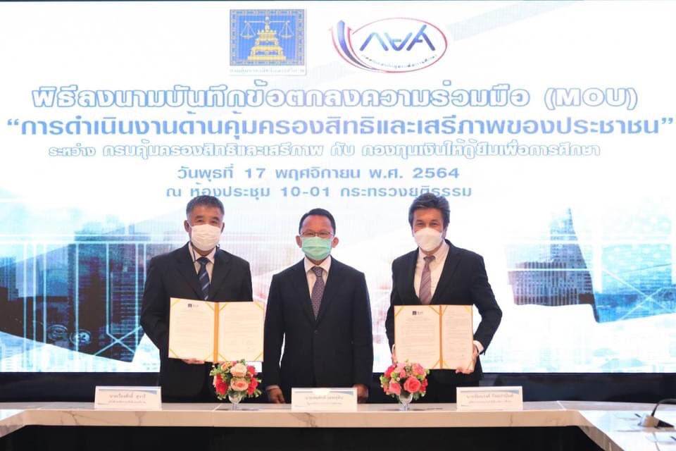 ที่กระทรวงยุติธรรม มีการจัดพิธีลงนามบันทึกข้อตกลงความร่วมมือ (MOU) “การดำเนินงานด้านคุ้มครองสิทธิและเสรีภาพของประชาชน” ระหว่าง กรมคุ้มครองสิทธิและเสรีภาพ กับ กองทุนเงินให้กู้ยืมเพื่อการศึกษา (กยศ.) โดยมีนายสมศักดิ์ เทพสุทิน รัฐมนตรีว่าการกระทรวงยุติธรรม เป็นประธานในพิธี