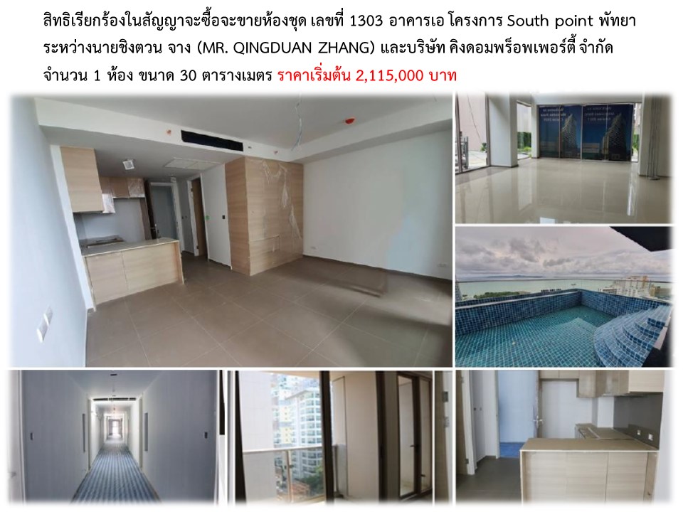 โดยมีรายการทรัพย์สินที่น่าสนใจ ประกอบด้วย ห้องชุด โครงการ C-View Boutique Condominium ราคาเริ่มต้น 2,215,000 บาท, ห้องชุด โครงการ New Nordic VIP-4 Condominium ขนาด 76.48 ตารางเมตร ราคาเริ่มต้น 3,188,000 บาท , ห้องชุดโครงการ New Nordic VIP-Suites5 Condominium ขนาด 49 ตารางเมตร และขนาด 52.5 ตารางเมตร ราคาเริ่มต้น 1,959,000 บาท และ 2,061,000 บาท , ห้องชุด โครงการ South point พัทยา ราคาเริ่มต้น 2,115,000 บาท
