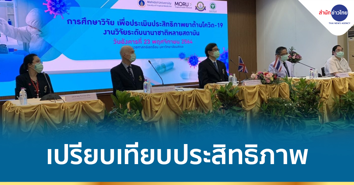 กรุงเทพฯ 23 พ.ย.- มหาวิทยาลัยมหิดลร่วมออกซฟอร์ด แถลงการศึกษาเปรียบเทียบประสิทธิภาพยาต้านโควิด-19 เป็นครั้งแรกของโลก หวังช่วยให้มาตรฐานการรักษาชัดเจน ผู้ป่วยเข้าถึงยาราคาถูก และมีประสิทธิภาพมากขึ้น