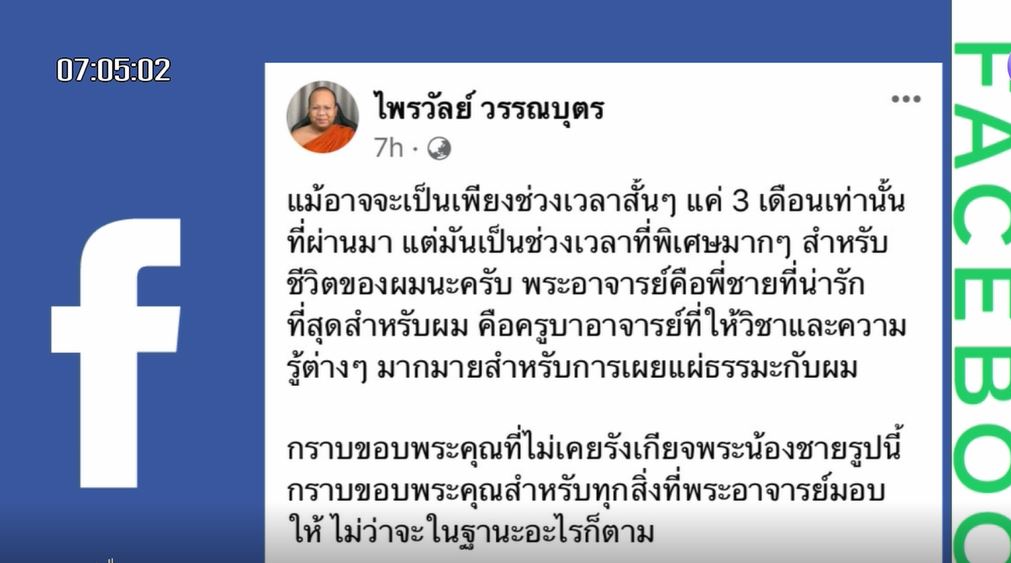 กรุงเทพฯ 29 พ.ย. – “พระมหาไพรวัลย์” เปลี่ยนชื่อเพจเฟซบุ๊กเป็น “ไพรวัลย์ วรรณบุตร” พร้อมโพสต์ขอบคุณพระพุทธศาสนาและพระมหาสมปอง