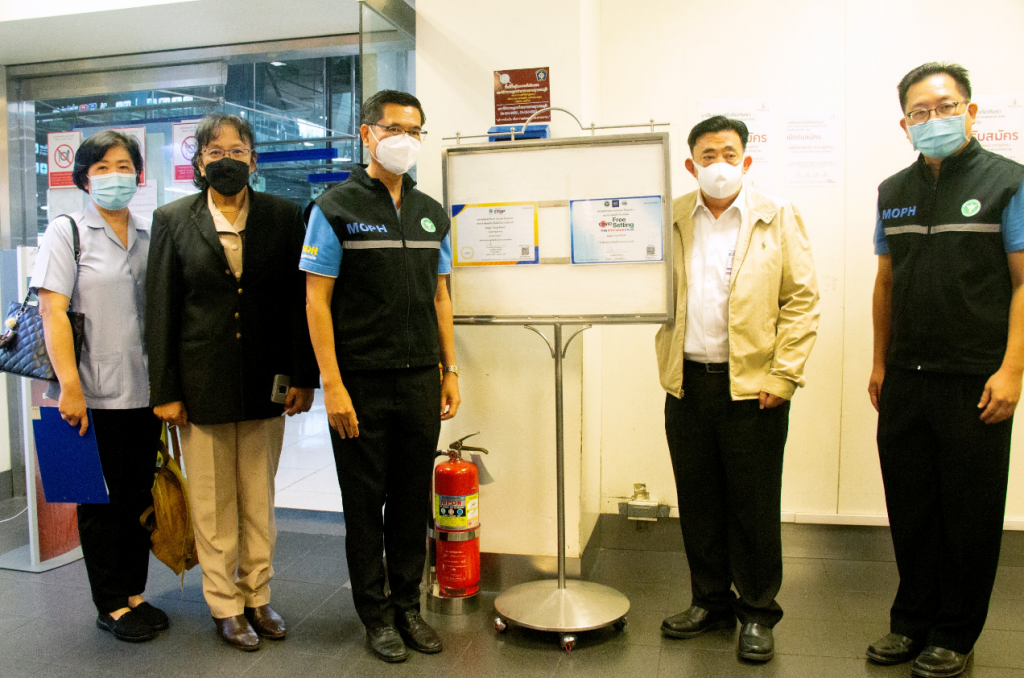 วันนี้ (29 พฤศจิกายน 2564) นายแพทย์อรรถพล แก้วสัมฤทธิ์ รองอธิบดีกรมอนามัย เปิดเผยภายหลังการลงพื้นที่ติดตามมาตรการ COVID Free Setting ในสถานประกอบการร้านอาหาร ณ ท่าอากาศยานสุวรรณภูมิ จังหวัดสมุทรปราการ ว่า การลงพื้นที่สถานประกอบกิจการร้านอาหารในท่าอากาศยานสุวรรณภูมิในครั้งนี้ ถือเป็นการย้ำมาตรการ COVID Free Setting ในสถานประกอบการร้านอาหารในท่าอากาศยานที่มีผู้ใช้บริการจำนวนมากควรปฏิบัติตามมาตรการ COVID Free Setting อย่างเคร่งครัด ทั้ง 3 ด้าน คือ 1) ด้านอนามัยสิ่งแวดล้อม โดยทำความสะอาด โต๊ะ ที่นั่ง ทันทีก่อนและหลังใช้บริการด้วย น้ำยาทำความสะอาดหรือผงซักฟอก ทำความสะอาดจุดสัมผัสร่วม รวมทั้งทำความสะอาดก๊อกน้ำที่ใช้ภายในสถานที่ปรุงประกอบอาหาร ล้างภาชนะอุปกรณ์ให้สะอาดตามหลักสุขาภิบาลอาหารด้วยน้ำยาล้างจานให้สะอาด แช่ในน้ำร้อน 80 องศาเซลเซียส เป็นเวลา 2 นาที อบหรือผึ่งให้แห้งก่อนใช้ใส่อาหาร รวมทั้งจัดให้มีที่ล้างมือพร้อมน้ำและสบู่สำหรับล้างมือ หรือจัดบริการเจลแอลกอฮอล์ประจำโต๊ะ จัดอุปกรณ์กินอาหารแบบส่วนบุคคล ได้แก่ อาหาร หรือภาชนะเครื่องปรุงรส อุปกรณ์แบบส่วนบุคคล โดยให้สวมหน้ากากอนามัยหรือหน้ากากผ้าให้ถูกต้องตลอดเวลา เว้นระยะห่างระหว่างบุคคลและโต๊ะที่นั่ง 1 – 2 เมตร ควบคุมความแออัดของผู้ใช้บริการภายในร้านอาหาร และให้งดจัดบริการอาหารในรูปแบบการให้ลูกค้าหยิบตักอาหารด้วยตนเอง “ข้อปฏิบัติถัดมา คือ 2) ด้านผู้ให้บริการ พนักงานทุกคน ควรฉีดวัคซีนตามเกณฑ์ที่กำหนดหรือเคยมีประวัติการติดเชื้อโควิดมาก่อนอยู่ในช่วง 1 – 3 เดือนหรือมีผลตรวจ ATK ตามมาตรการแล้วไม่พบเชื้อ เช่น การสุ่มตรวจพนักงานในร้านอาหารทุก 7 – 14 วัน ตรวจเชื้อเมื่อมีอาการที่น่าสงสัย หรือตรวจเมื่อมีผลการประเมินไทยเซฟไทยมีความเสี่ยงสูง เป็นต้น นอกจากนี้ เน้นย้ำและให้ปฏิบัติตามมาตรการ UP-DMHTA อย่างเข้มข้น โดยคัดกรองความเสี่ยงพนักงานทุกวัน และกำหนดให้มีผู้รับผิดชอบกำกับติดตาม พนักงาน และผู้รับบริการทุกคน รวมทั้งงดรวมกลุ่มขณะปฏิบัติงาน ระหว่างพักกินอาหารร่วมกัน และ 3) ด้านผู้รับบริการ ควรมีการคัดกรองความเสี่ยงของผู้รับบริการก่อนเข้าร้านด้วยไทยเซฟไทย โดยขอความร่วมมือให้เจ้าของร้านกำกับติดตามผู้รับบริการ ให้ปฏิบัติตามมาตรการป้องกันการติดเชื้อแบบครอบจักรวาล UP-DMHTA อย่างเคร่งครัด ผู้รับบริการสวมหน้ากากผ้าหรือหน้ากากอนามัยให้ถูกต้องตลอดเวลา ยกเว้นเฉพาะตอนกินอาหารเท่านั้น ใช้บริการในร้านอาหารไม่เกิน 2 ชั่วโมง เว้นระยะห่างระหว่างบุคคล 1 – 2 เมตร โดยให้ปฏิบัติตามมาตรก