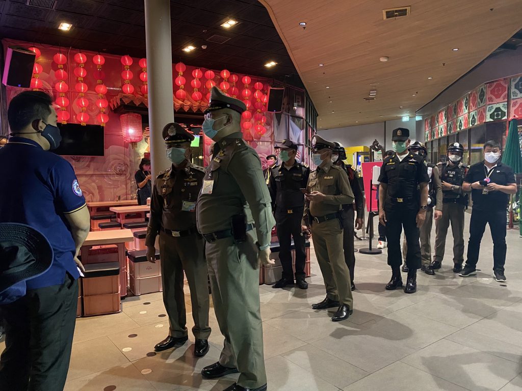 ขณะที่เจ้าหน้าที่ตำรวจ สน.ปทุมวัน พร้อมด้วยเจ้าหน้าที่เทศกิจ สำนักงานเขตปทุมวัน เข้าตรวจสอบภายในสถานประกอบการร้านอาหารย่านเซ็นทรัลเวิลด์