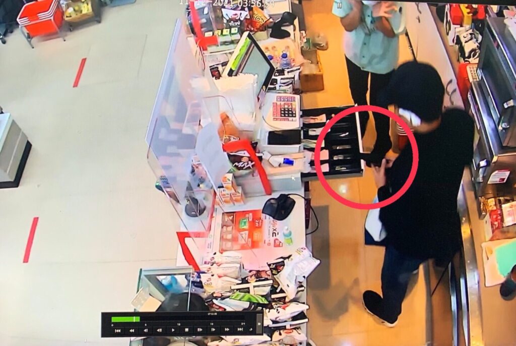 กล้องวงจรปิดบันทึกภาพคนร้าย เป็นชายใส่หมวกแก๊ป สวมหน้ากากอนามัยปิดบังใบหน้า เสื้อแขนยาวสีดำ กางเกงขายาว ร้องเท้าผ้าใบสีดำ ในมือถือกระเป๋าผ้าสีขาว เดินเข้ามาในร้านสะดวกซื้อ สาขาวิคตอรี่มอลล์ บริเวณอนุสาวรีย์ชัยสมรภูมิ ฝั่งเกาะพญาไท กรุงเทพฯ ช่วงเวลาประมาณ 03.54 น. จากนั้นคนร้ายทำที่เลือกซื้อของภายในร้าน ก่อนจะเดินไปที่เคาน์เตอร์ชำระเงิน ใช้อาวุธปืนขู่พนักงาน ในขณะเกิดเหตุมีพนักงานหญิงหนึ่งคนอยู่บริเวณเคาน์เตอร์ชำระเงิน จากนั้นคนร้ายเดินอ้อมไปหลังเคาน์เตอร์โดยในถือถืออาวุธปืน เข้าไปหยิบเงินสดจากลิ้นชักเก็บเงินและหลบหนีออกจากร้านไป ทีมข่าวสำนักข่าวไทยลงพื้นที่จุดเกิดเพตุ พบว่าร้านสะดวกซื้อสาขาที่เกิดเหตุ ยังคงเปิดบริการและมีลูกค้าเข้าซื้อของตามปกติ