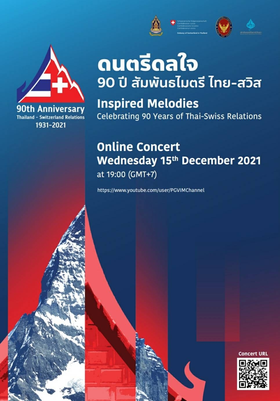 นายอิทธิพล คุณปลื้ม รัฐมนตรีว่าการกระทรวงวัฒนธรรม เปิดเผยว่า เนื่องในโอกาสครบรอบ90 ปี การสถาปนาความสัมพันธ์ทางการทูตระหว่างไทยและสมาพันธรัฐสวิสเมื่อวันที่ 28 พฤษภาคม ปี พ.ศ.2474 วธ.ร่วมกับสถาบันดนตรีกัลยาณิวัฒนา สถานเอกอัครราชทูตสวิตเซอร์แลนด์ประจำประเทศไทย และสถานเอกอัครราชทูต ณ กรุงเบิร์น จัดกิจกรรมการแสดงดนตรีในรูปแบบเสมือนจริง “ดนตรีดลใจ 90 ปี สัมพันธไมตรีไทย-สวิส-Inspired Melodies Celebrating 90 years of Thai-Swiss Relations”ในวันที่ 15 ธันวาคม 2564 เวลา 19.00 น. นักเรียน นักศึกษา และประชาชนสามารถรับชมผ่านทาง https://www.youtube.com/user/PGVIMChannel และ ทางเฟซบุ๊กของกระทรวงวัฒนธรรม https://th-th.facebook.com/ThaiMCulture/ รับชมออนไลน์พร้อมกันทั่วโลก