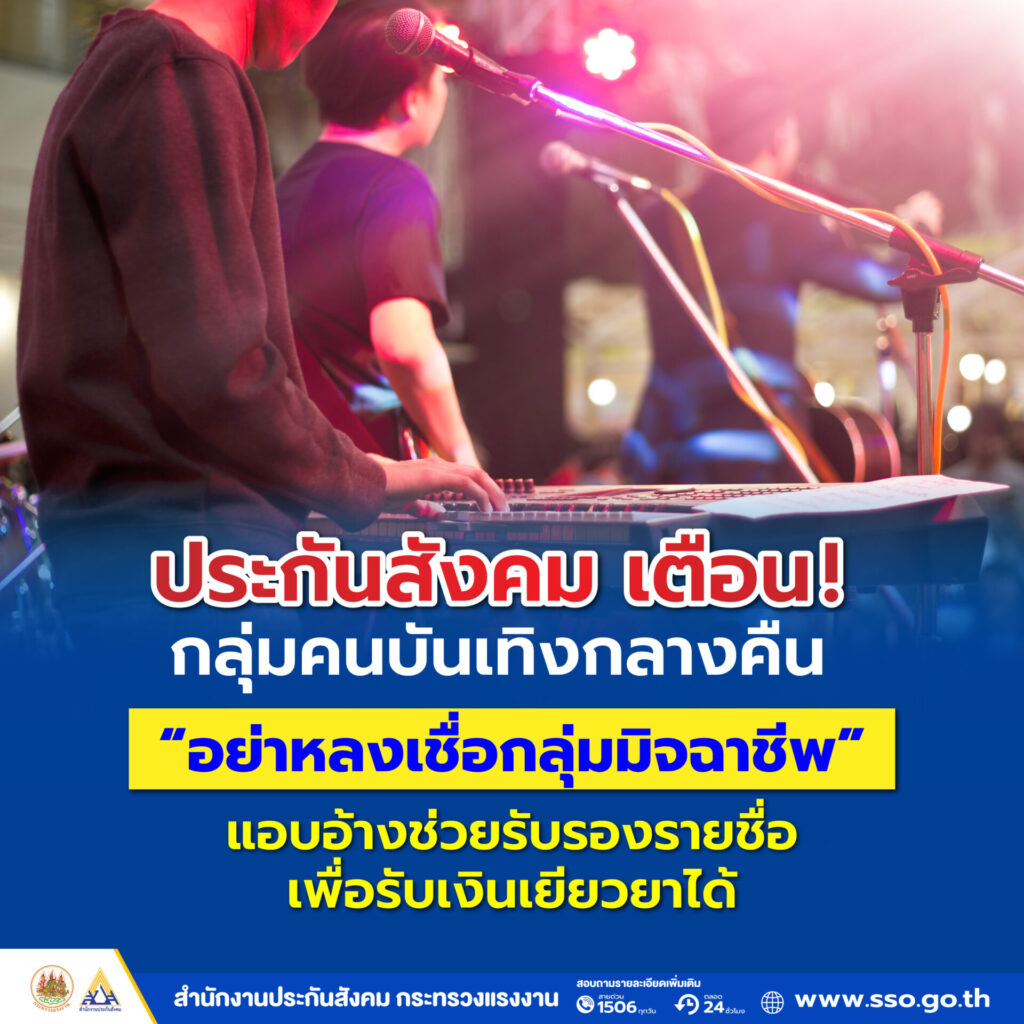 กทม. 23 ธ.ค.- ประกันสังคม เตือนภัย กลุ่มคนบันเทิงกลางคืน “อย่าหลงเชื่อกลุ่มมิจฉาชีพ” แฝงตัวชมรมศิลปินบันเทิงฯ แอบอ้างรับรองเอารายชื่อรับเงินเยียวยา