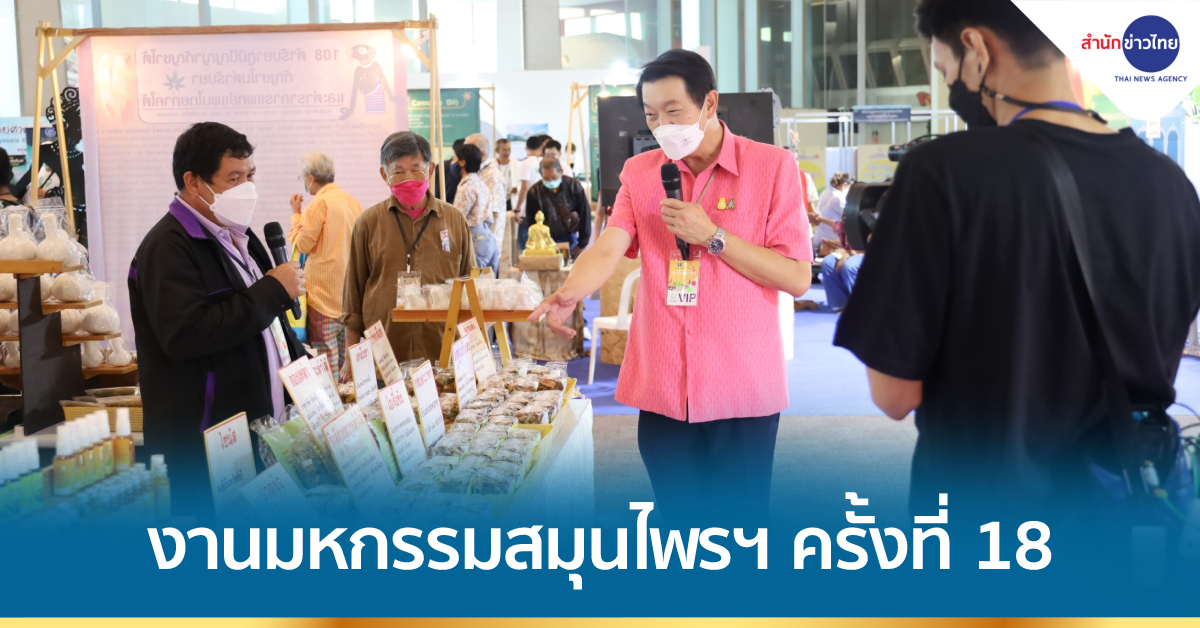 กรมการแพทย์แผนไทยและการแพทย์แผนทางเลือก กระทรวงสาธารณสุข ชวนช้อป ชิม แชร์ งานมหกรรมสมุนไพรแห่งชาติครั้งที่ 18 คอนเซ็ปต์ “กัญชานำไทย สมุนไพรสร้างชาติ” โชว์ศักยภาพของกัญชาพืชเศรษฐกิจใหม่จะสร้างรายได้เข้าประเทศ จากผู้ประกอบการ ภาครัฐ เอกชน และวิสาหกิจชุมชน ขนทัพผลิตภัณฑ์มาจัดแสดงภายในงาน