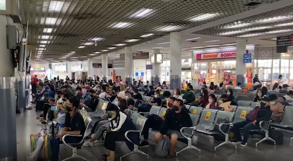 ส่วนบรรยากาศการเดินทางของประชาชนในช่วงเทศกาลปีใหม่ที่สถานีรถไฟหัวลำโพง วันนี้ซึ่งเป็นวันทำงานสุดท้ายของปี ช่วงเย็นหลังเลิกงานประชาชนได้ทยอยเดินทางมาซื้อตั๋วโดยสาร เพื่อกลับภูมิลำเนาอย่างต่อเนื่อง โดยก่อนที่ประชาชนจะเข้ามาภายในสถานีนั้นจะต้องผ่านการวัดอุณหภูมิ และก่อนการซื้อตั๋วโดยสารจะต้องมีการสแกนไทยชนะ เพื่อระบุจังหวัดปลายทางเป็นข้อมูลติดตามตัว โดยในช่วงที่ต้องเว้นระยะห่าง เพื่อป้องกันการแพร่ระบาดของโควิด-19 ทางสถานีรถไฟหัวลำโพงได้จำกัดการซื้อตั๋วโดยสาร ให้ระบุที่นั่งโดยไม่มีการจำหน่ายตั๋วยืน เพื่อเว้นระยะห่างได้อย่างถูกต้องตามมาตรการด้านสาธารณสุข โดยผู้โดยสารจะต้องสวมหน้ากากอนามัยตลอดระยะเวลาการเดินทาง และภายในขบวนรถจะไม่มีการจำหน่ายเครื่องดื่มหรืออาหารให้กับผู้โดยสาร